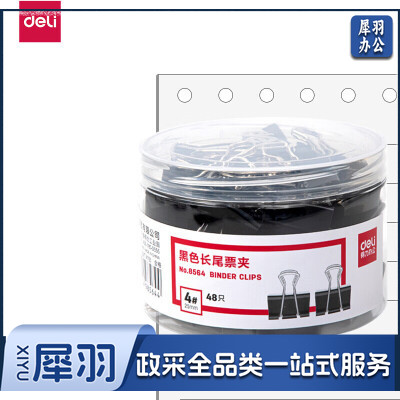 得力8564-4#黑色长尾票夹25mm筒装(黑) 单位:盒