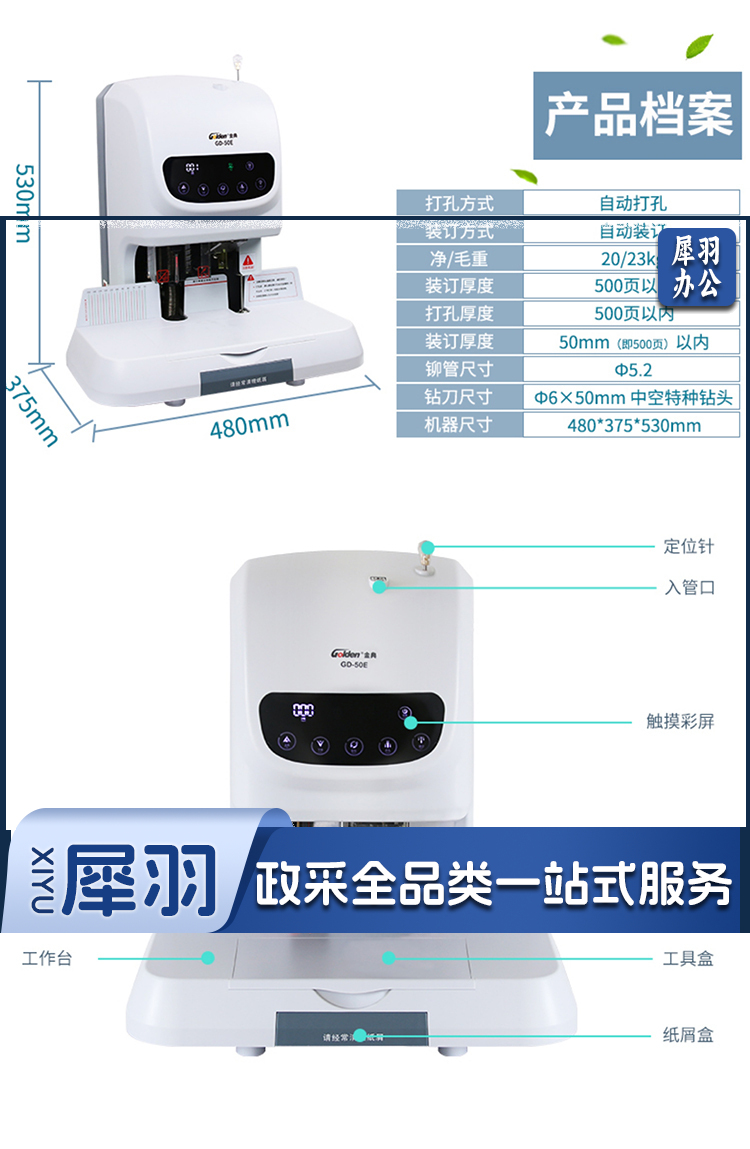 金典 GD-50E财务凭证装订机 自动激光定位打孔 液晶屏显示