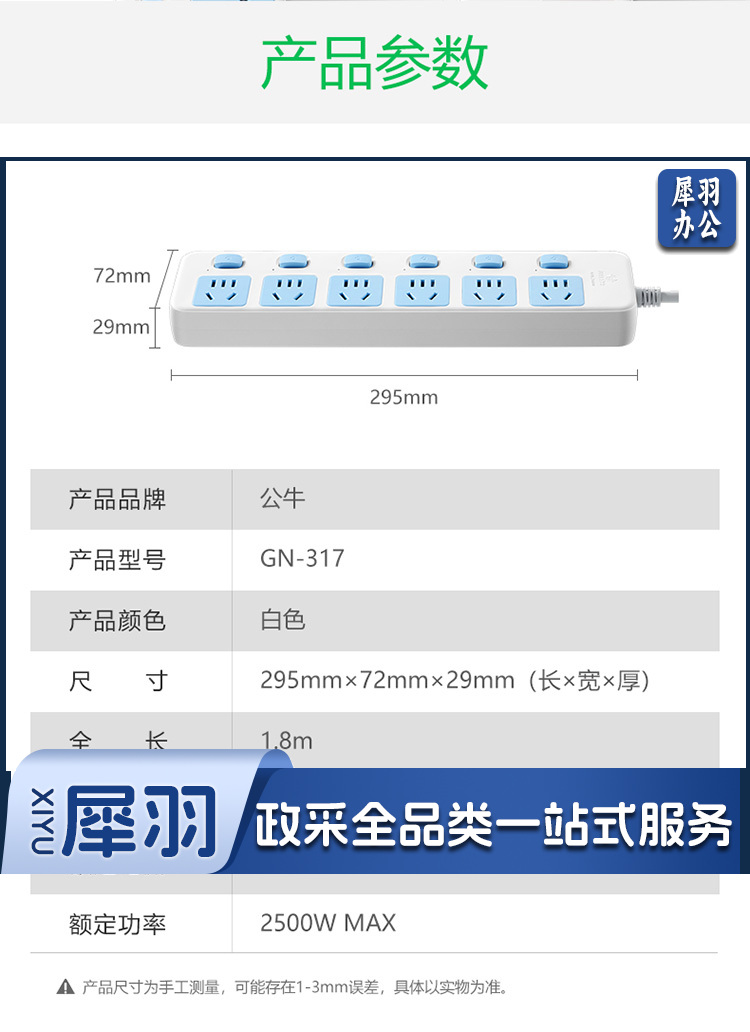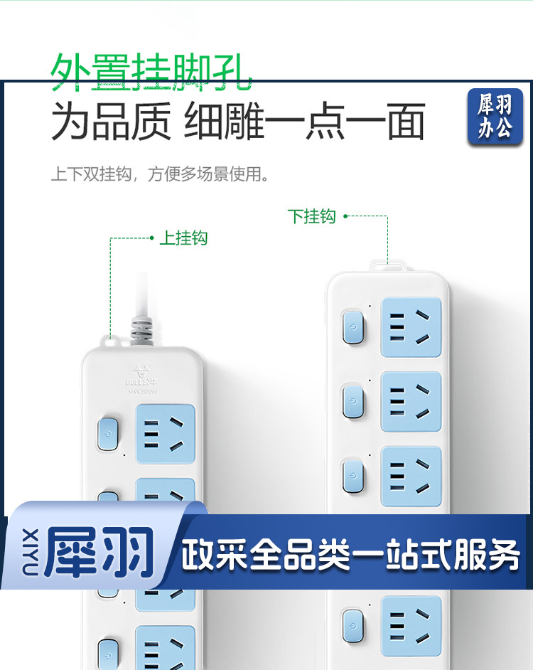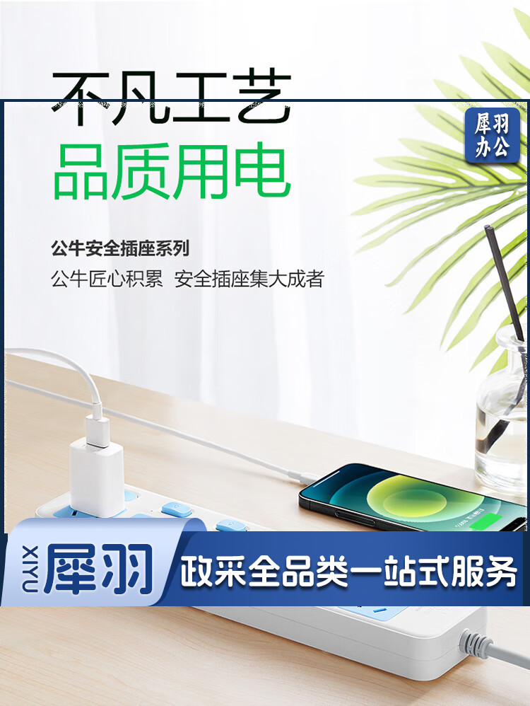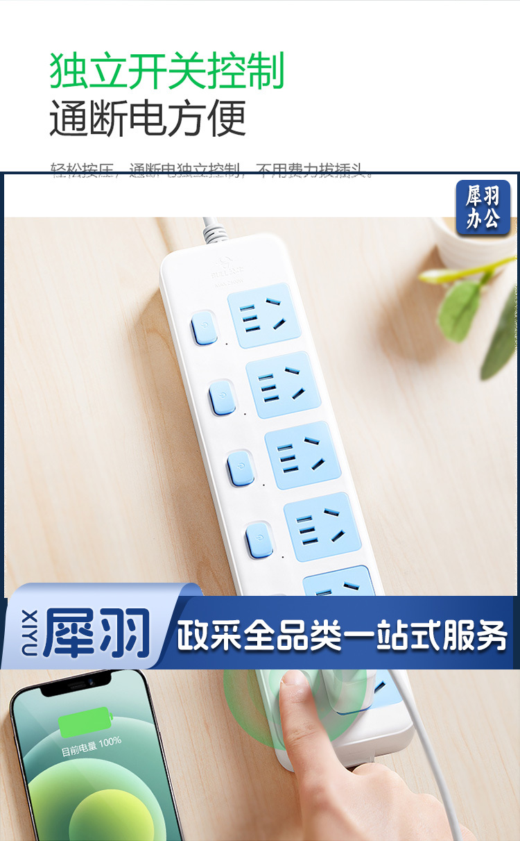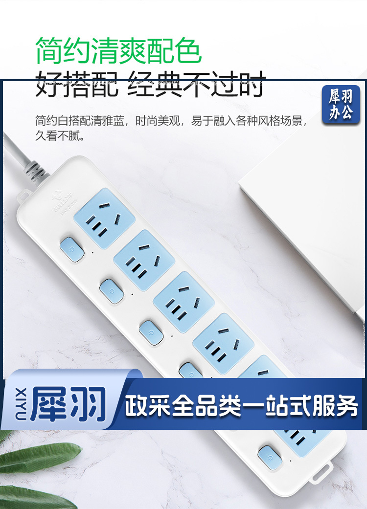 公牛(BULL)新国标插座/插线板/插排6位分控全长1.8米 GN-317