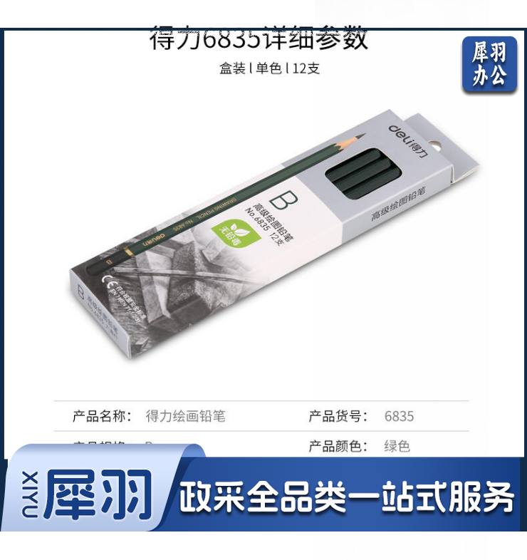 得力6835-B高级绘图铅笔(绿色)(12支/盒)