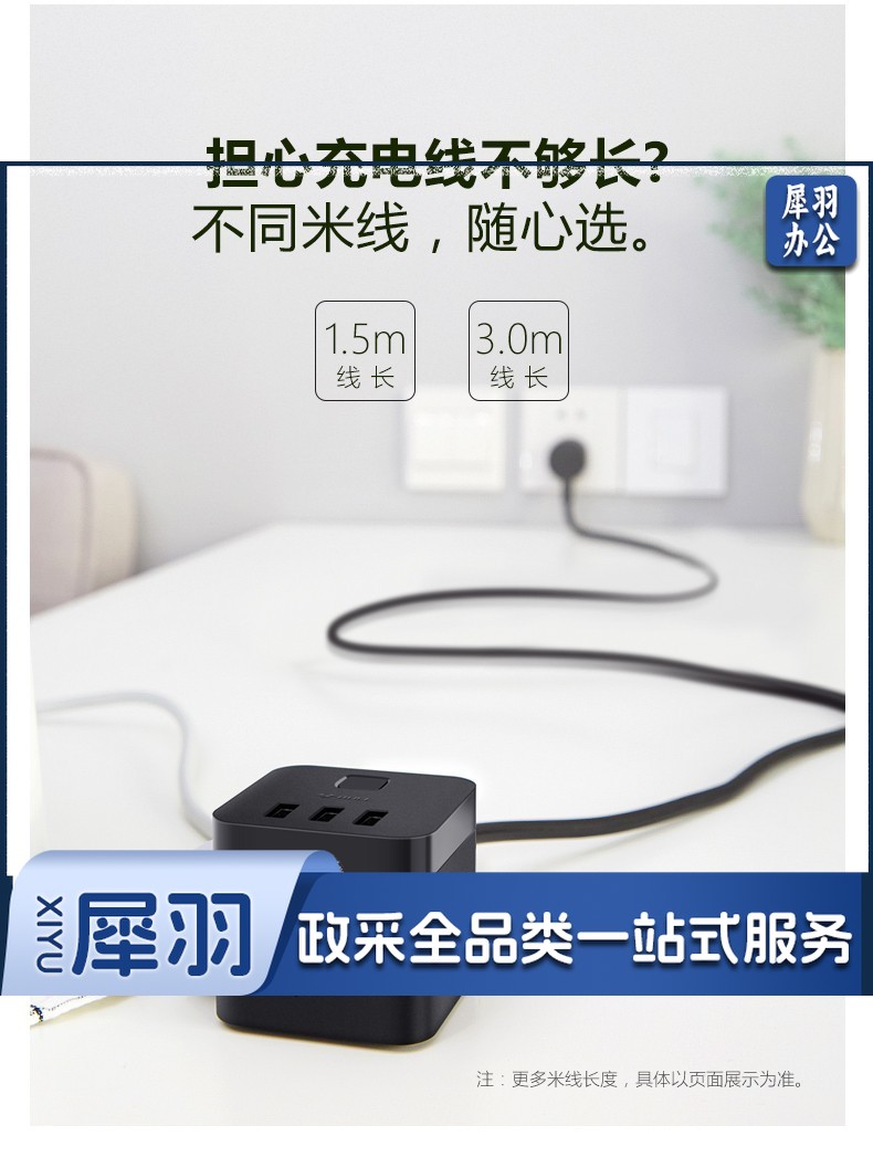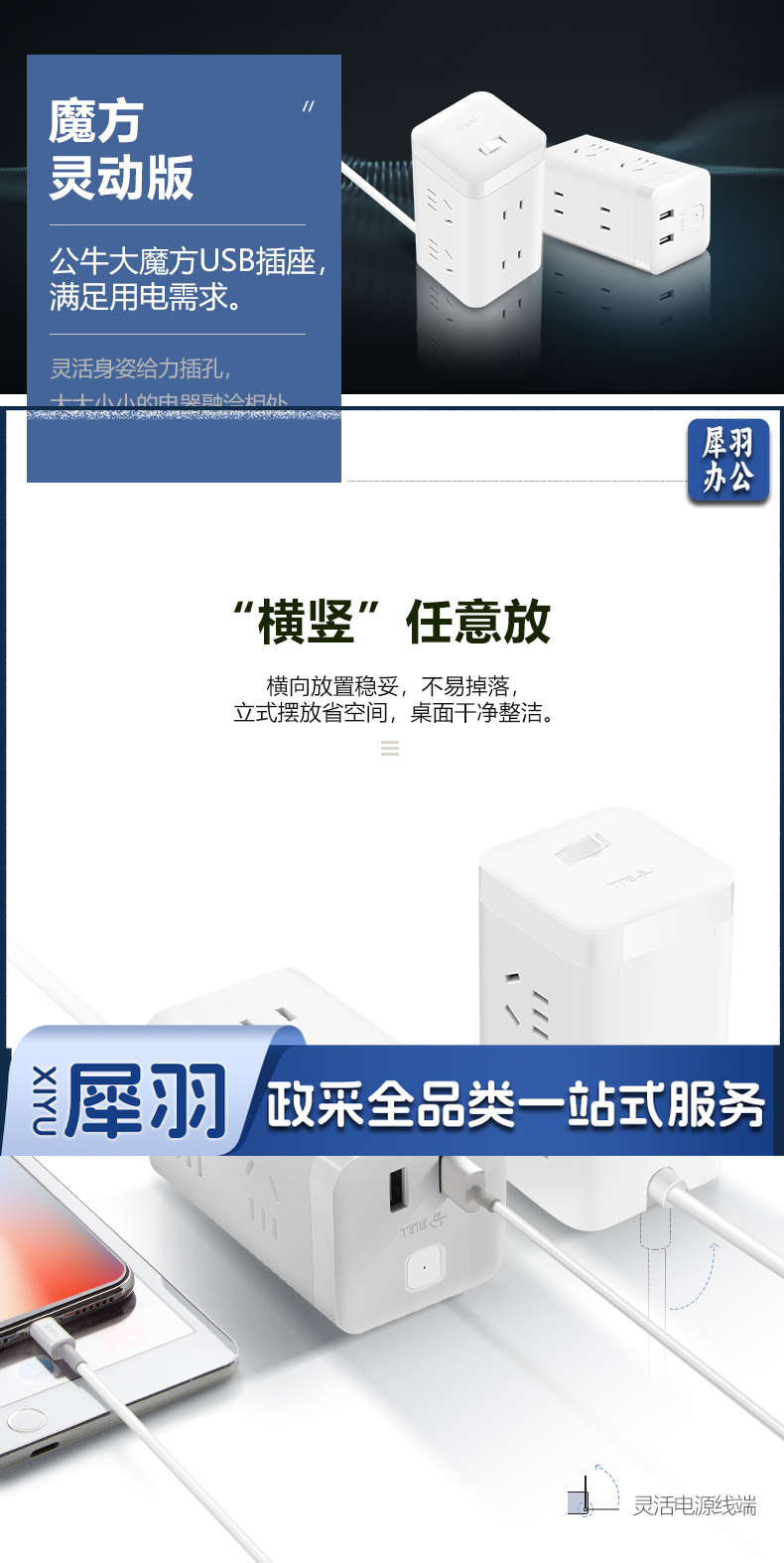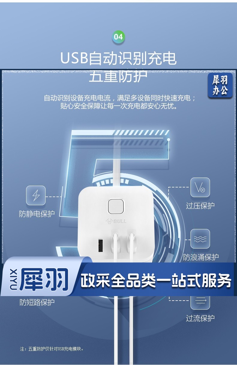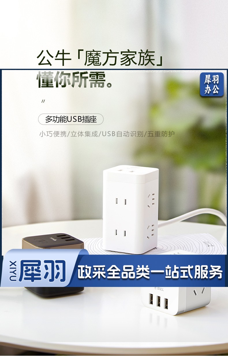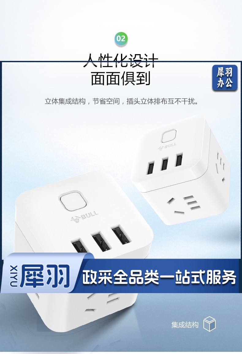 公牛(BULL) GN-U303U 魔方USB插座 插线板/插排/排插/接线板/拖线板 3USB接口+3插孔全长 1.5米