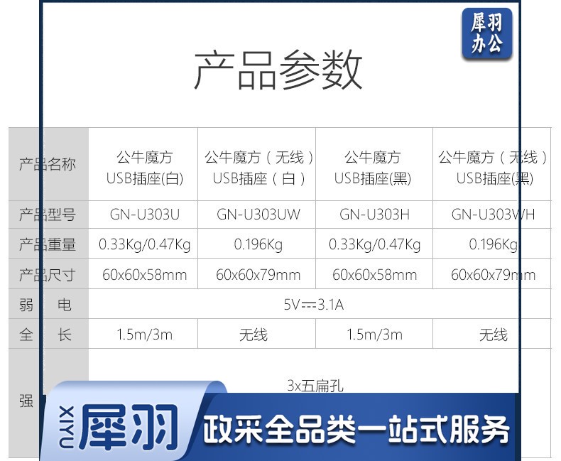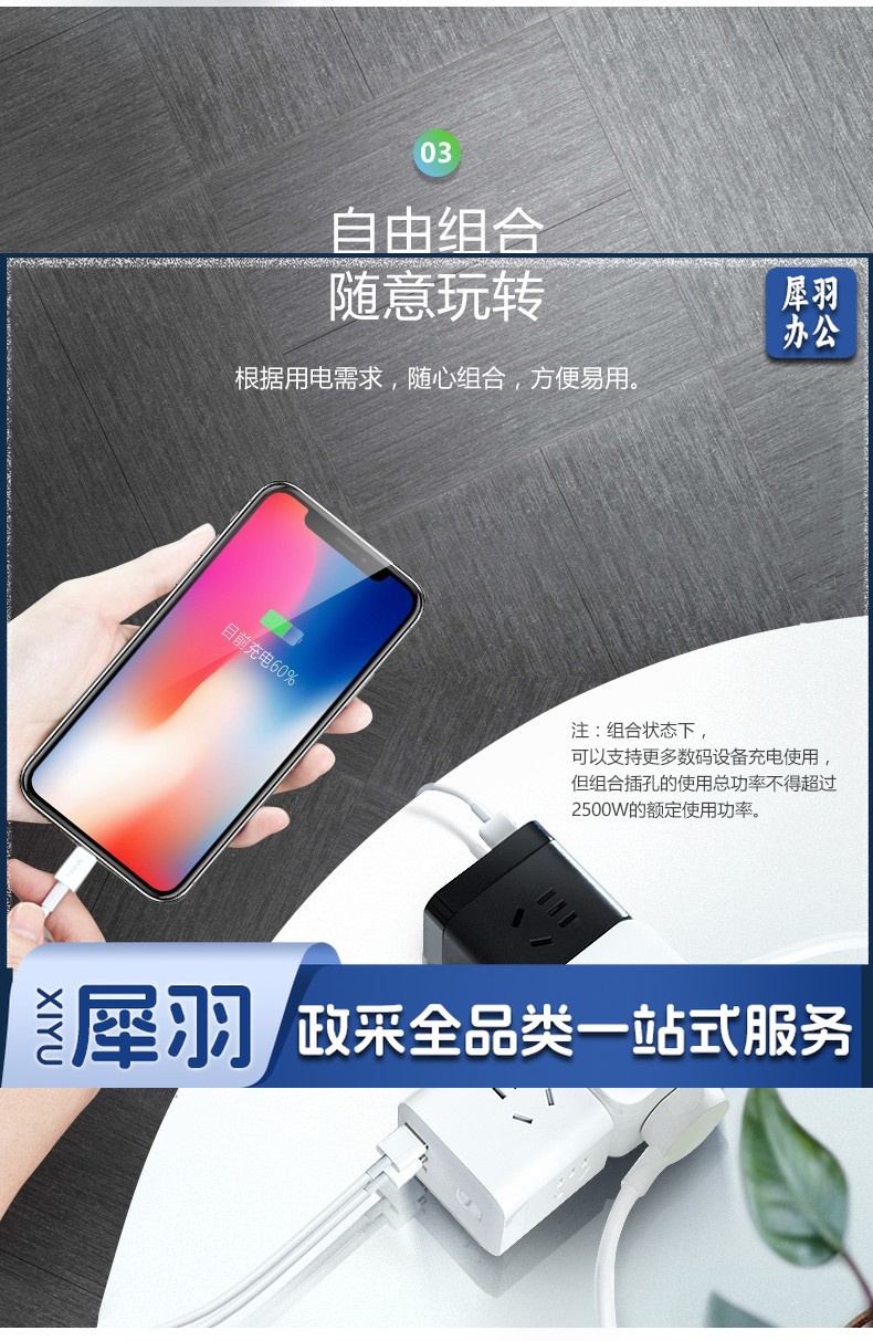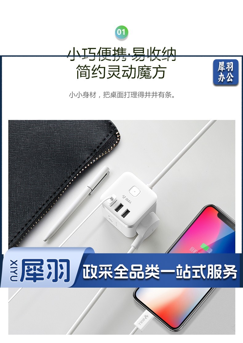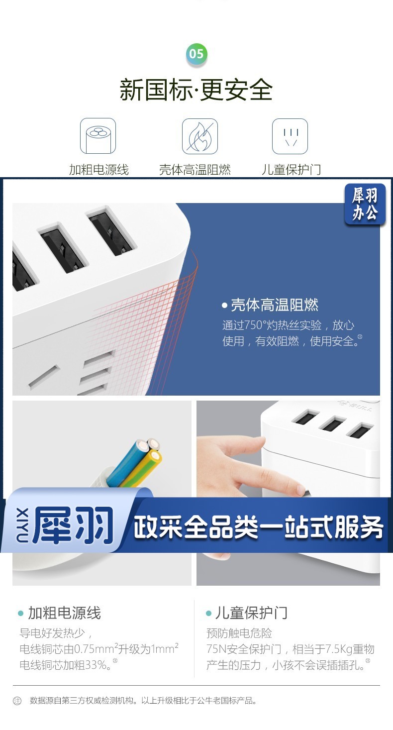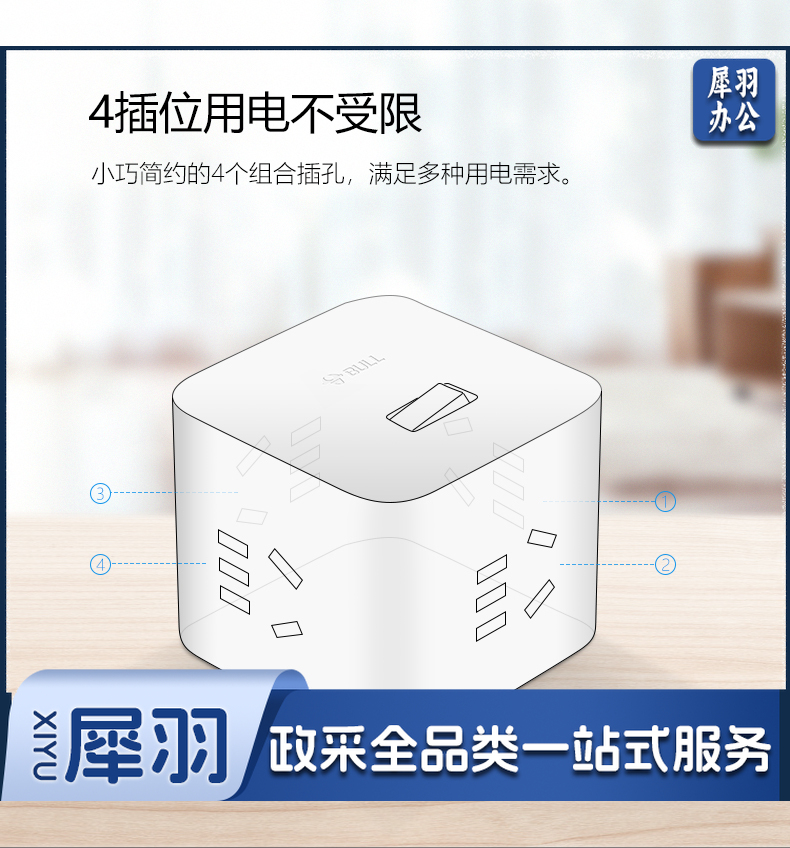 公牛(BULL) GN-U303U 魔方USB插座 插线板/插排/排插/接线板/拖线板 3USB接口+3插孔全长 1.5米