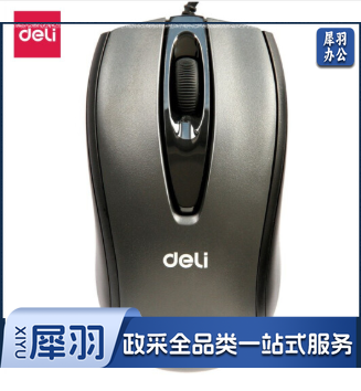 得力 3716 有线鼠标(黑)对称设计