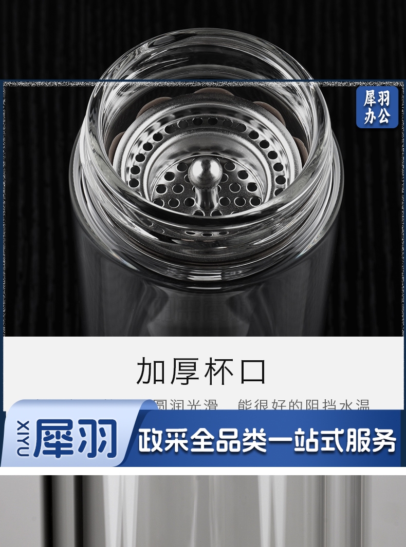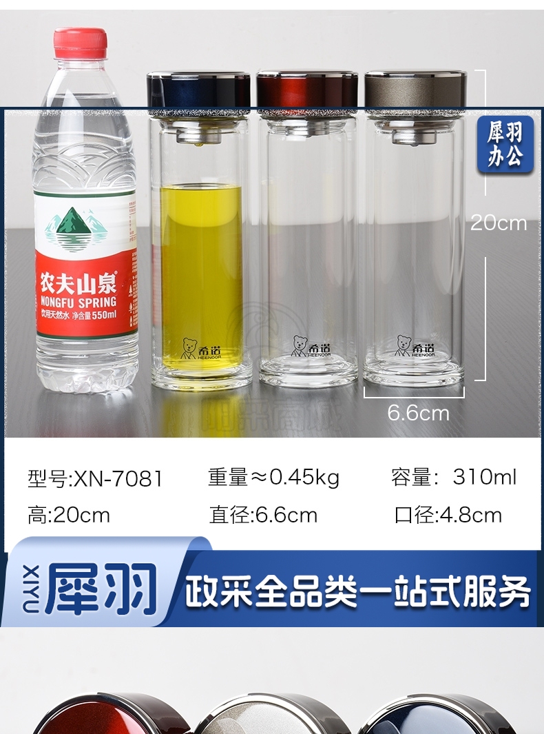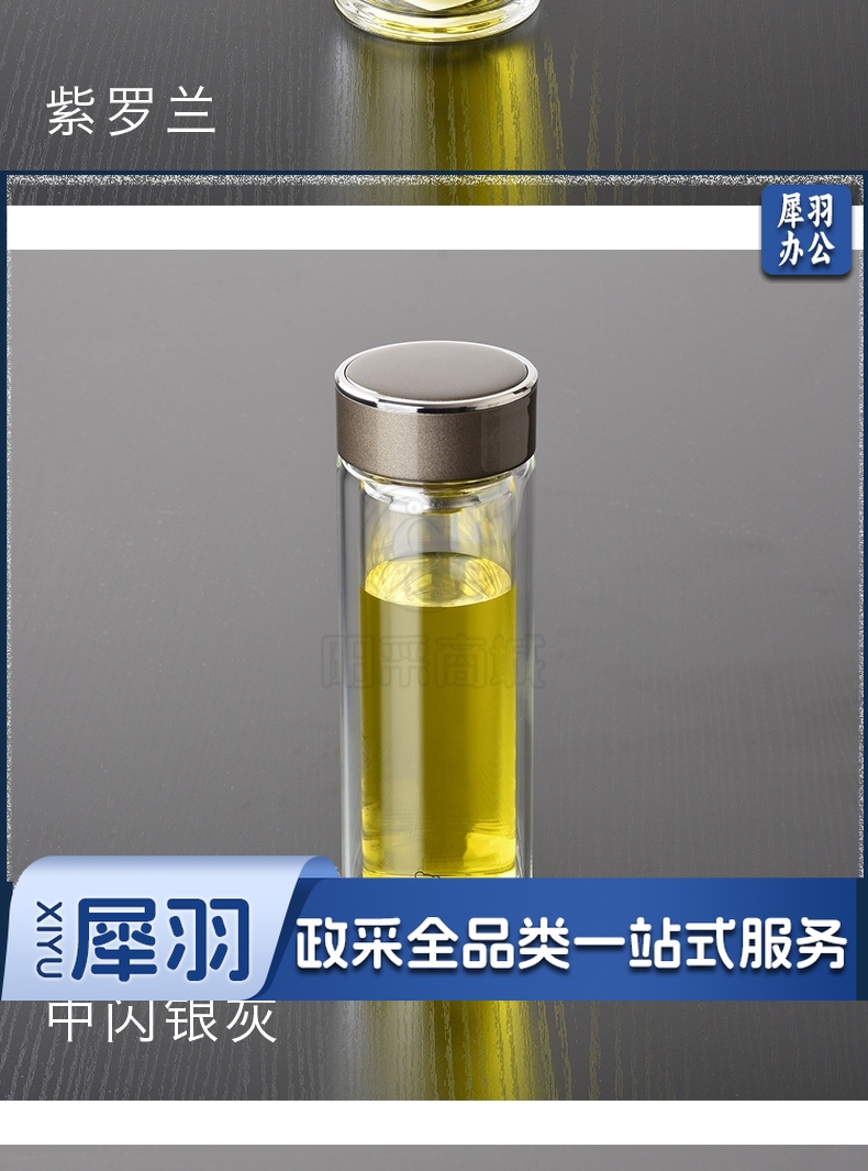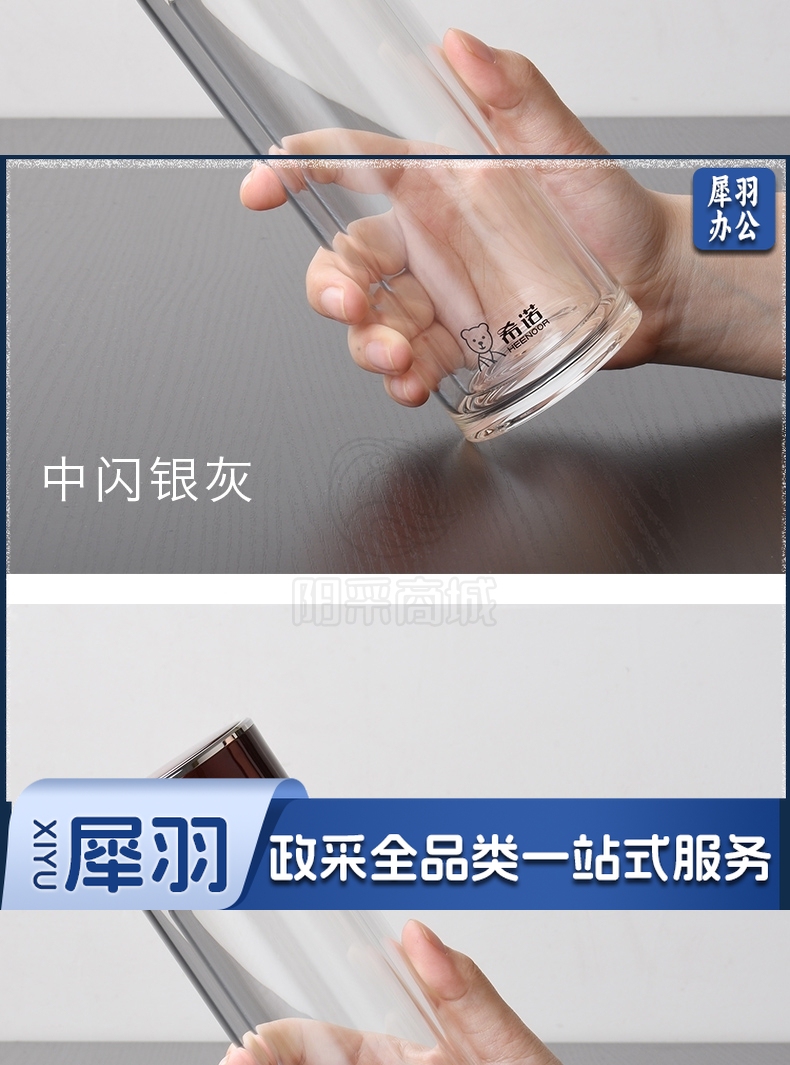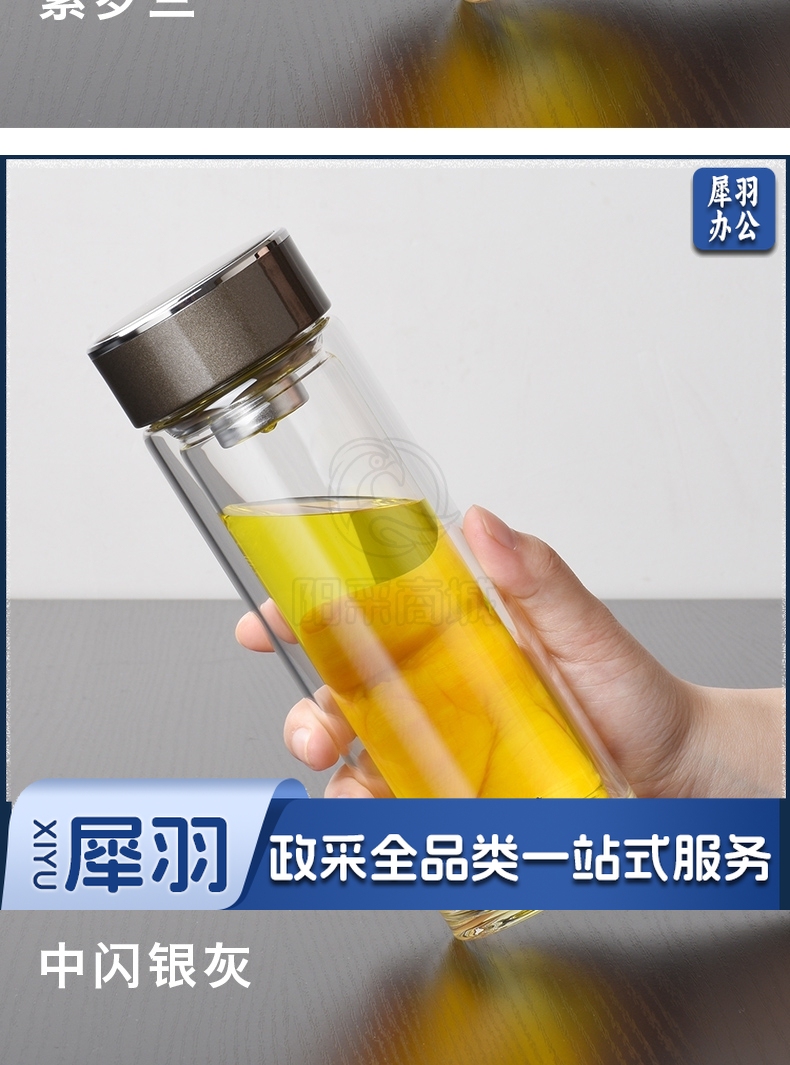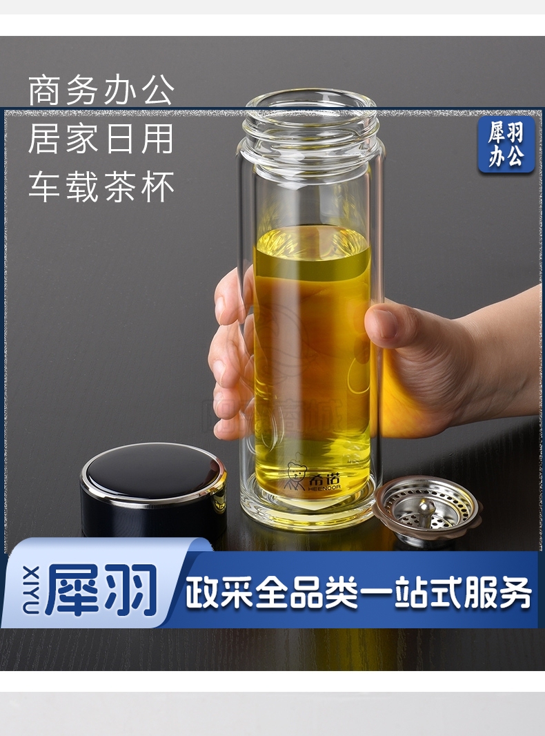 希诺(HEENOOR) 玻璃杯双层隔热茶杯男士商务办公泡茶带滤网便携车载水杯 XN-7081中闪银灰【310ml】