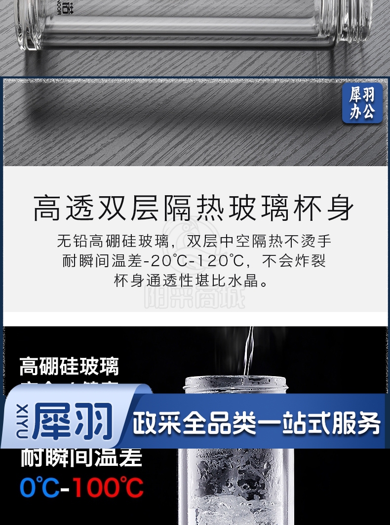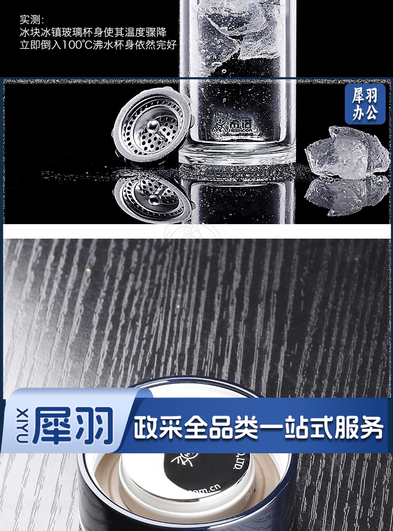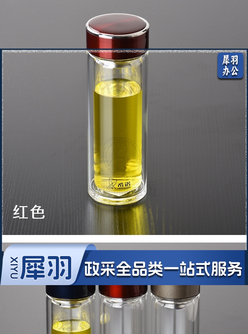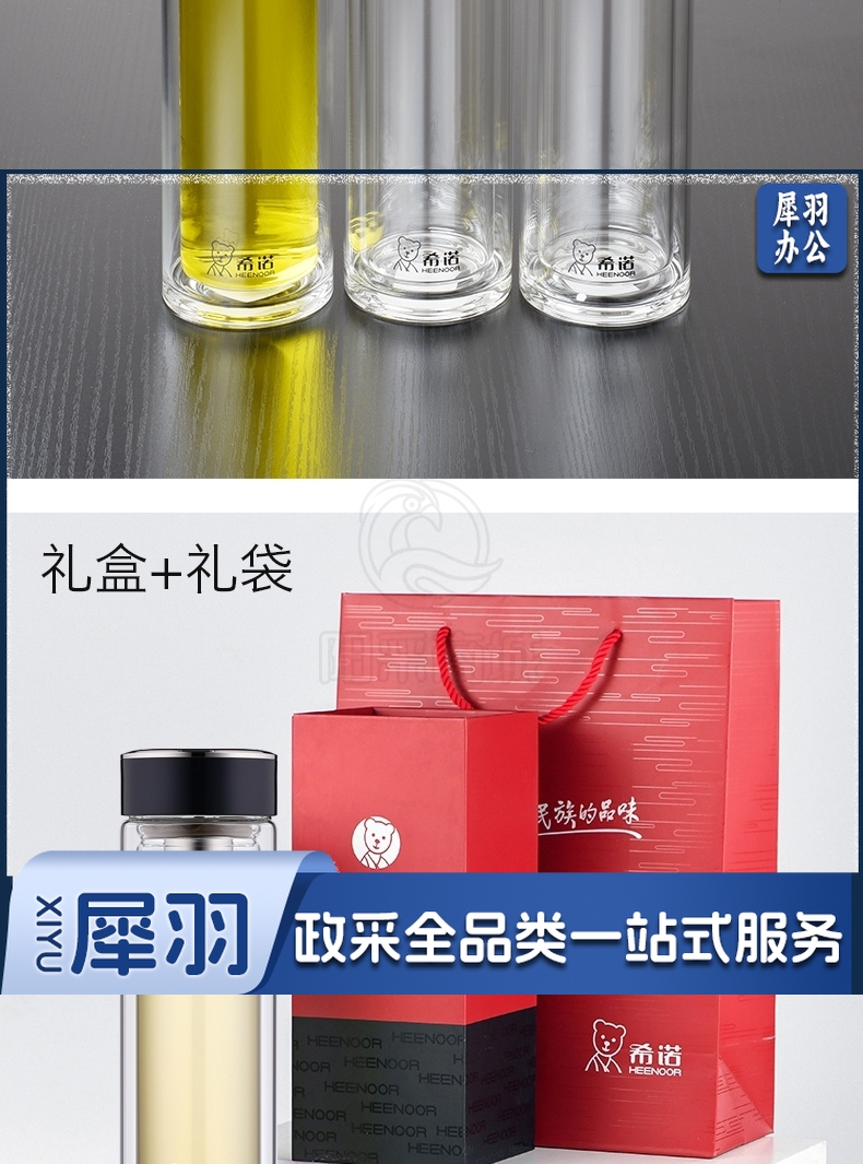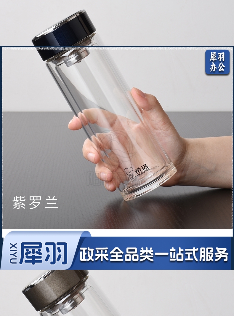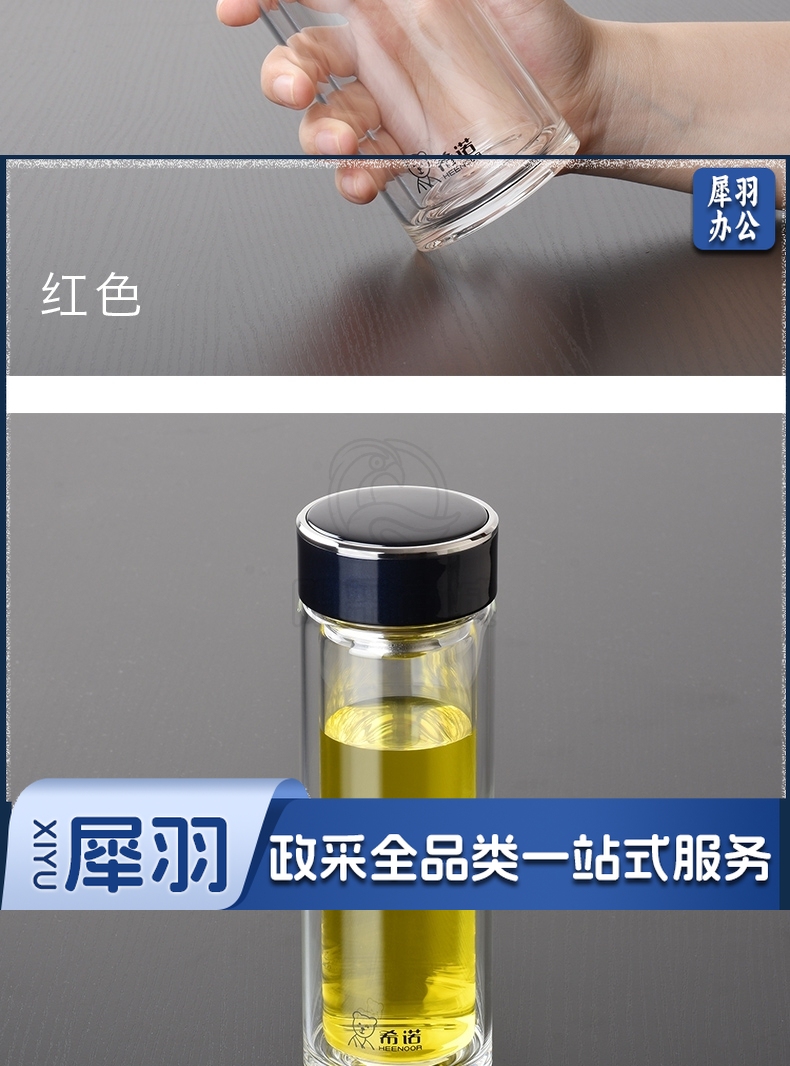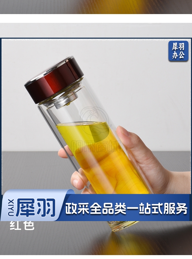 希诺(HEENOOR) 玻璃杯双层隔热茶杯男士商务办公泡茶带滤网便携车载水杯 XN-7081中闪银灰【310ml】