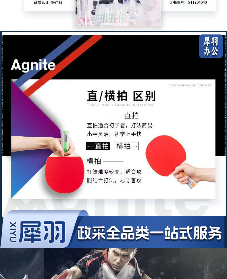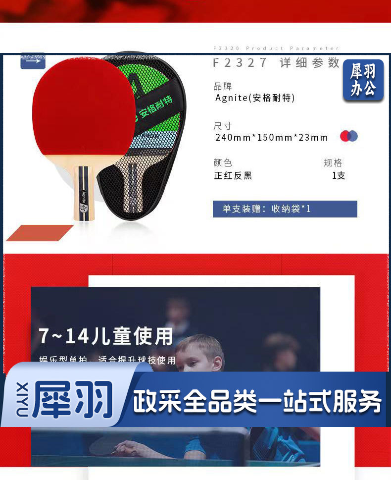 安格耐特F2327一星乒乓球拍(红+黑)(直拍)(单支装)