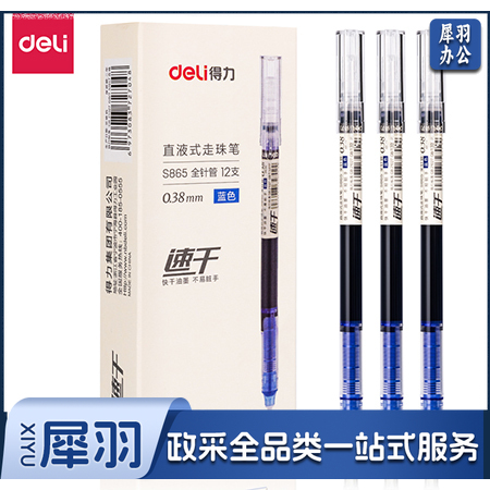 得力S865直液式走珠笔0.38mm全针管(蓝)(支)
