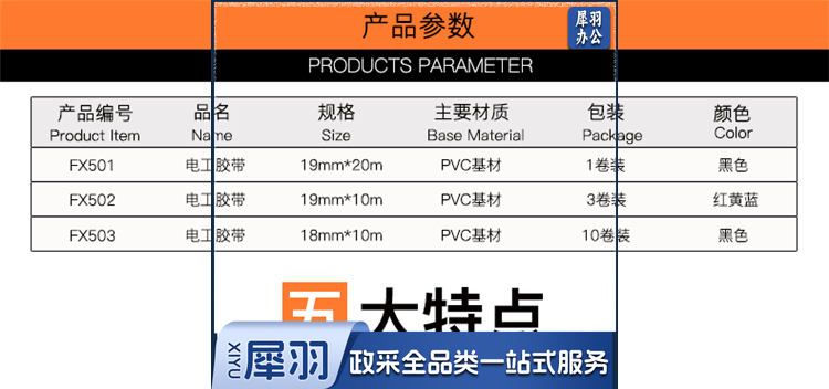 伏兴 FX501 FX501 PVC电气绝缘胶带电工胶布 无铅阻燃胶带 宽19mm 超长20米 (卷)