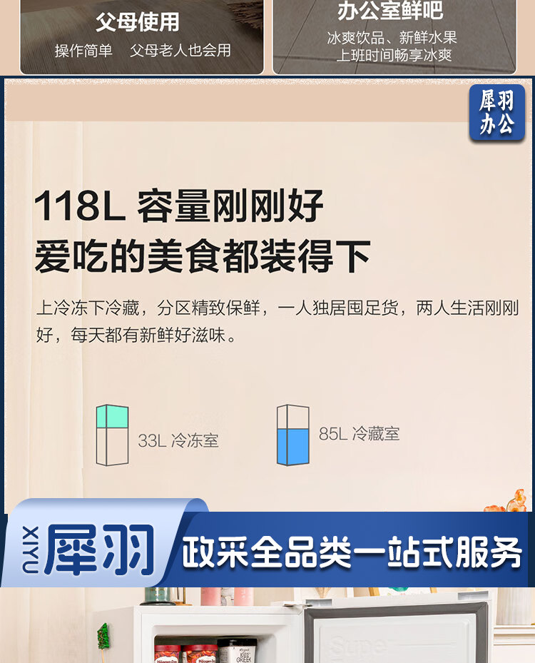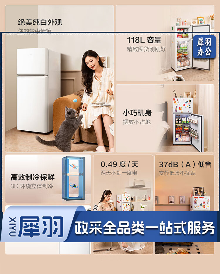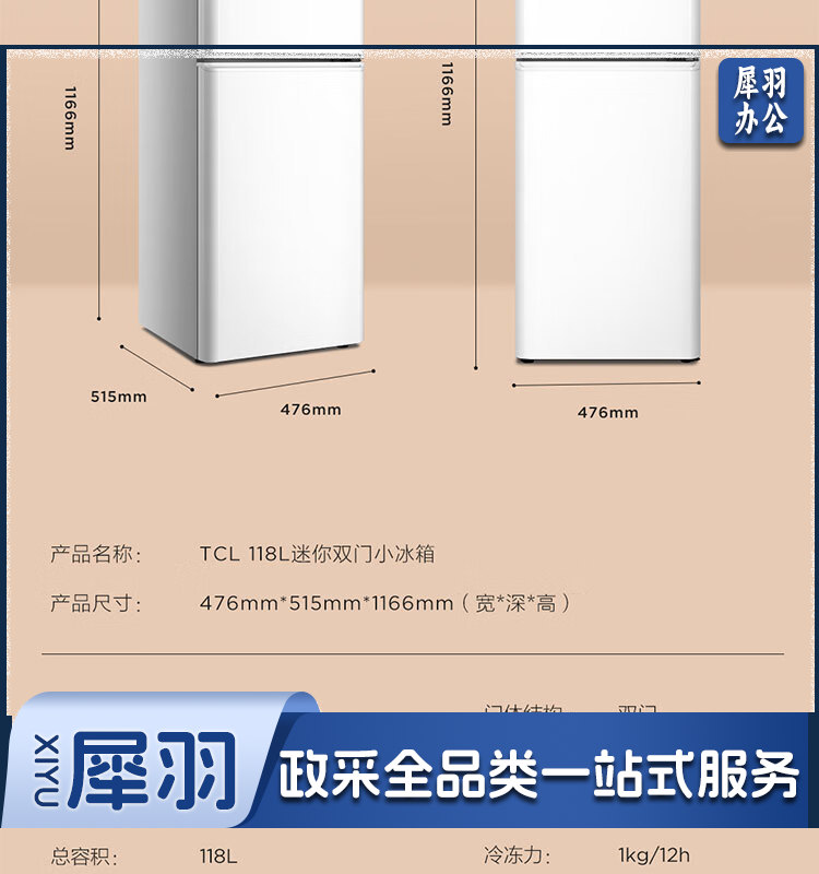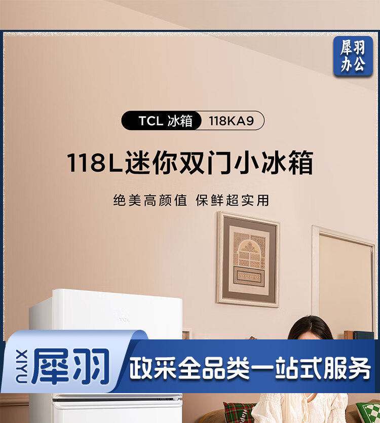 TCL 118升双开门两门二门养鲜冰箱小户型小型家用电冰箱迷你租房办公室LED照明节能冰箱BCD-118KA9