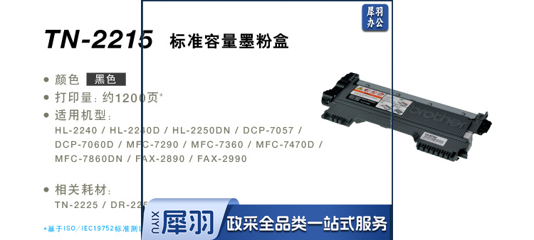 兄弟 Brother TN-2215 黑色碳粉盒(适用DCP 2240D 7360 7470D 7060D)