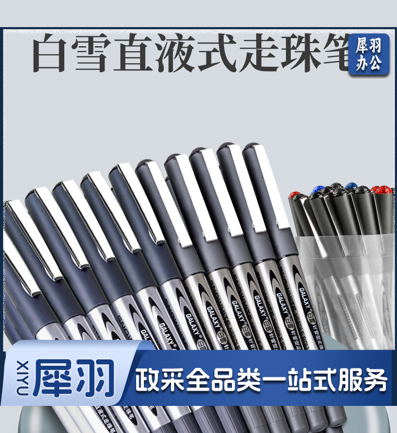 白雪(snowhite)PVR-155直液式走珠笔子弹型学生办公用中性笔签字笔教师12支/盒