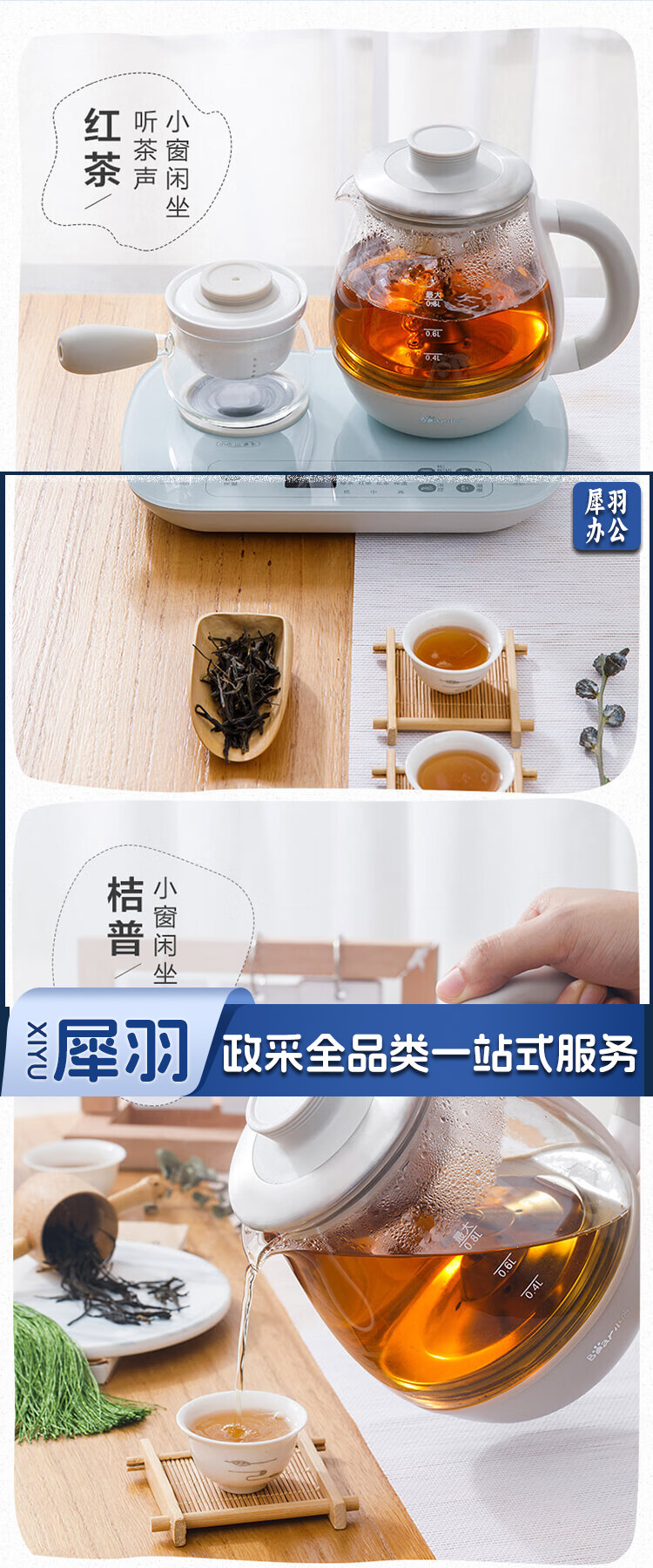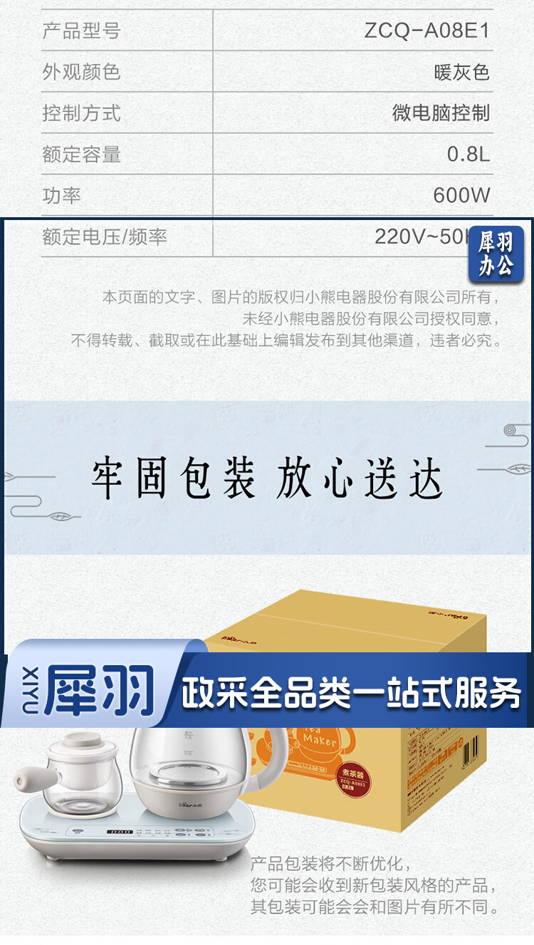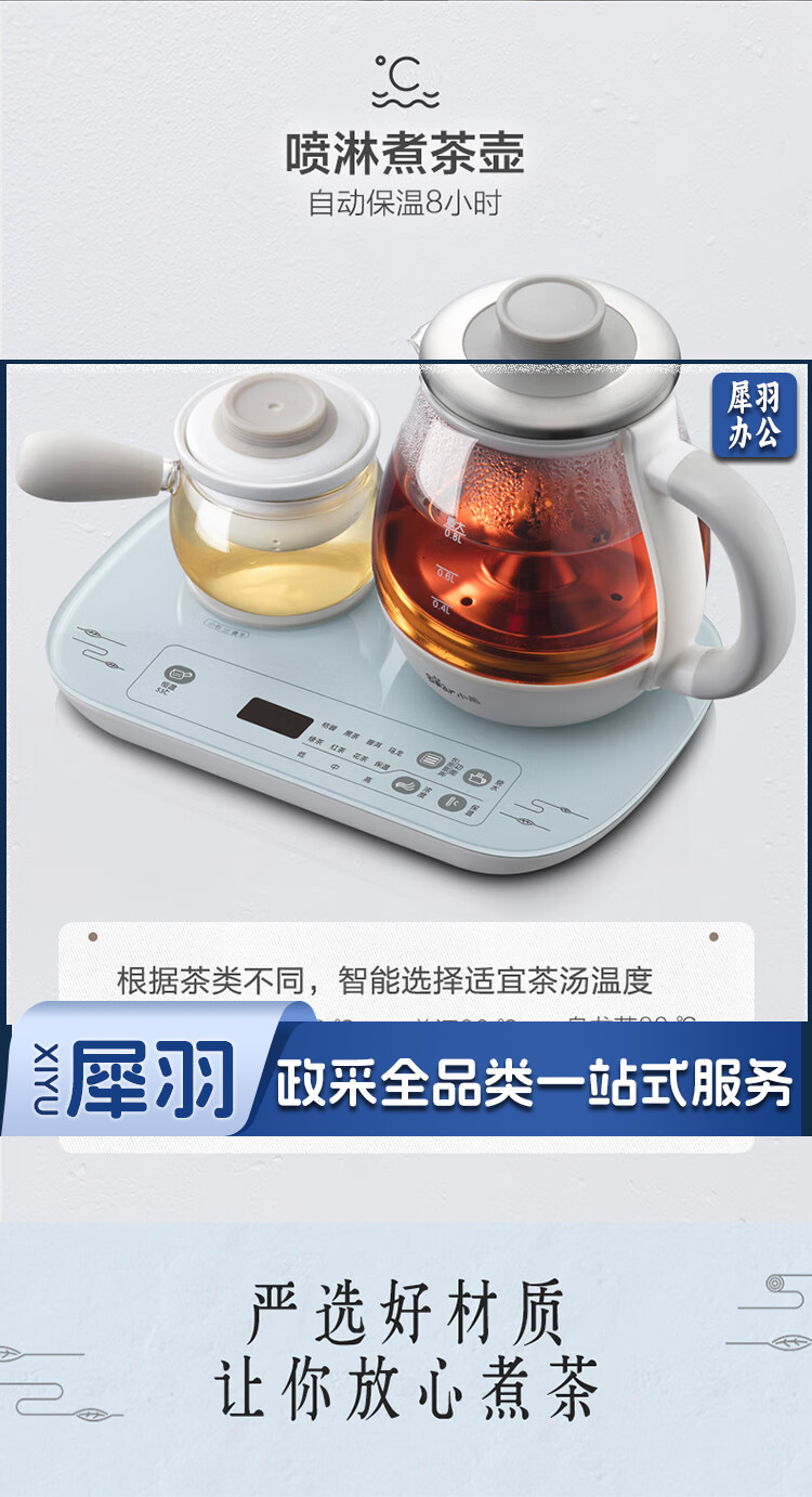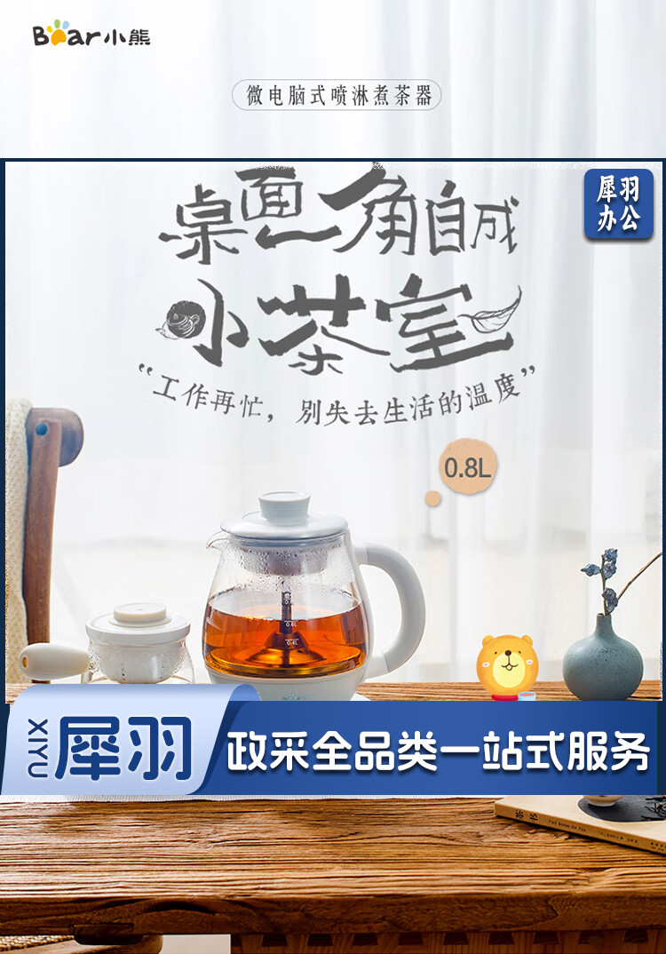 小熊(Bear)煮茶器煮茶壶 0.8L蒸汽喷淋式蒸茶壶养生壶电水壶热水壶304不锈钢烧水壶茶具黑茶