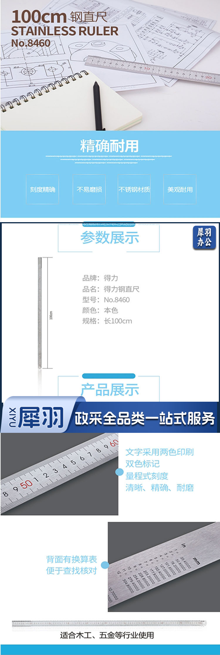 得力/deli 8460 钢直尺 100cm 不锈钢色(单位:把)