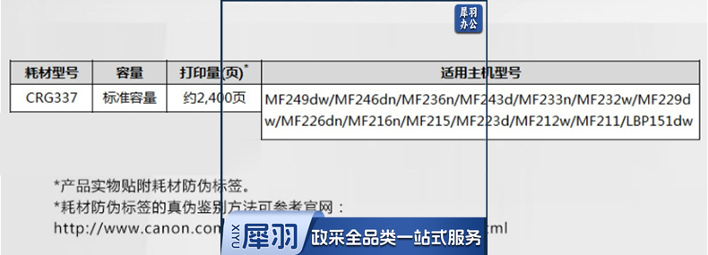 佳能原装鼓CRG337 适用于MF249dw/MF246dn/MF243d/MF236n/MF233n/MF232w/MF229dw/226dn/216n