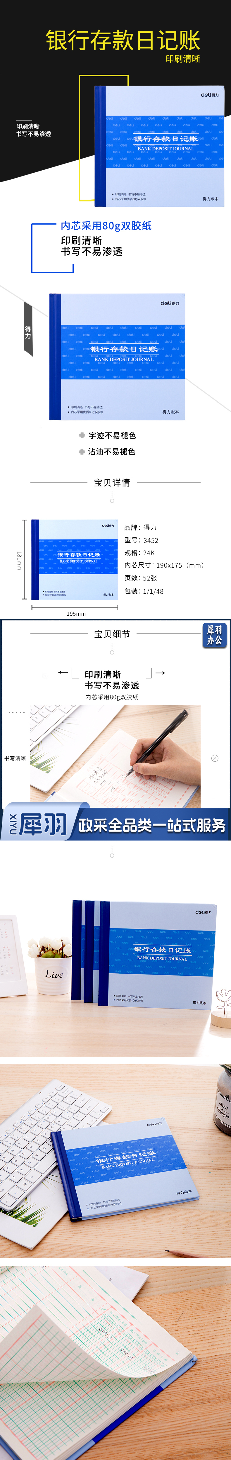 得力3452银行存款日记账(蓝)-100页-24K(本)