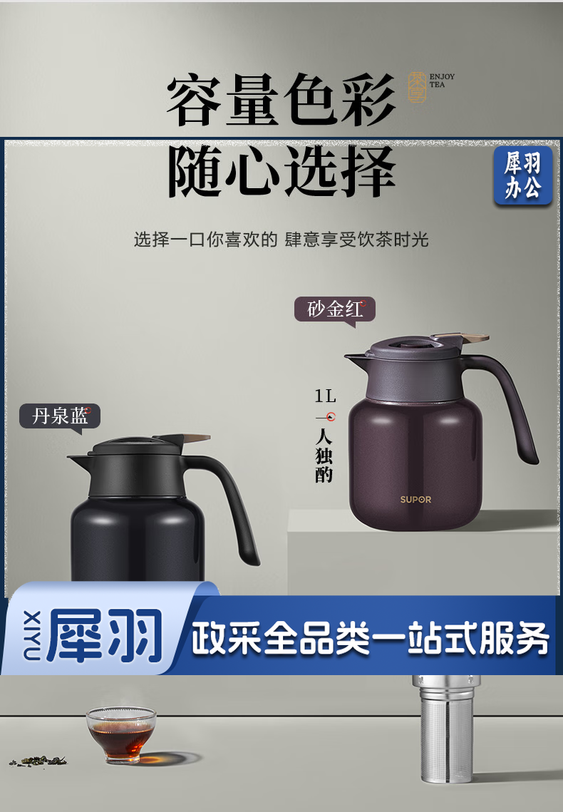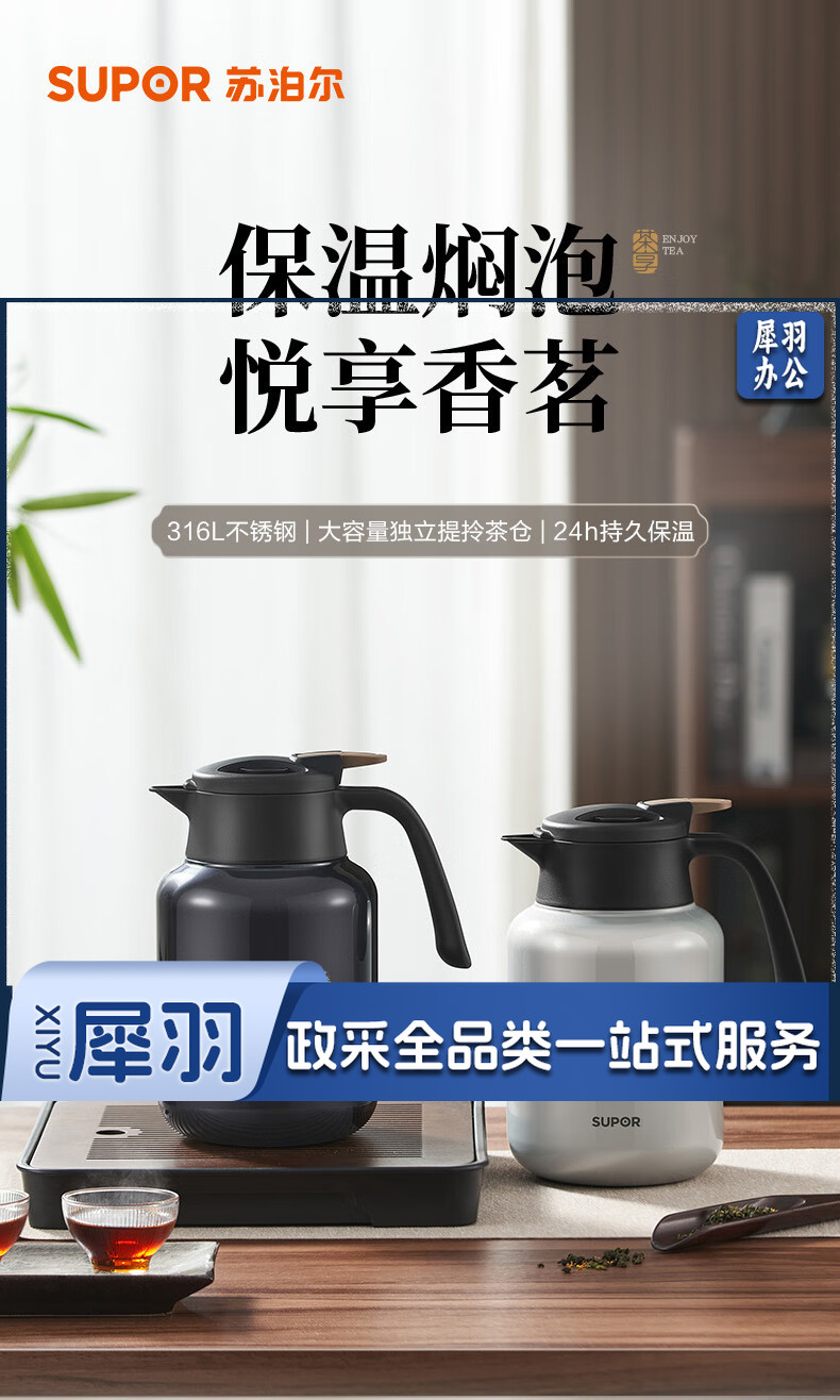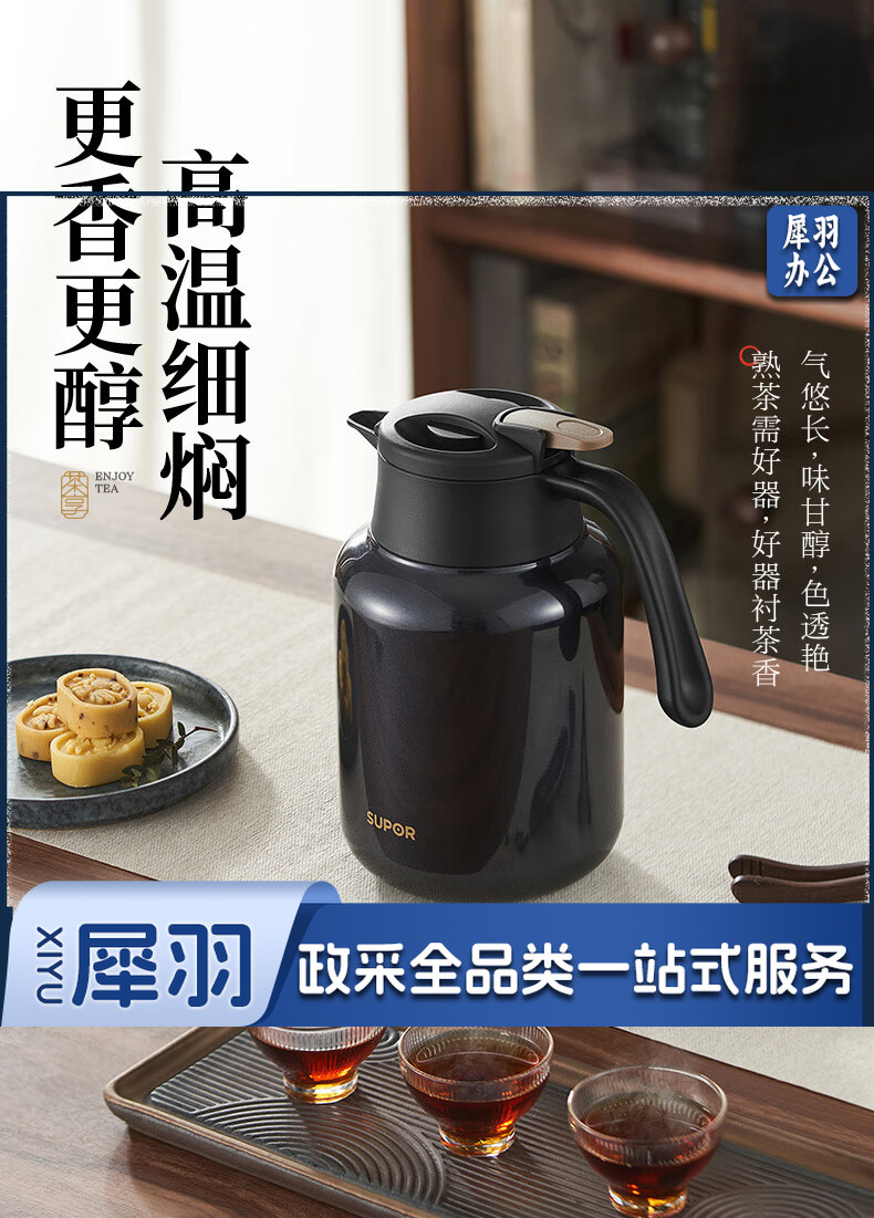 苏泊尔焖茶壶家用泡茶保温壶大容量水壶316L不锈钢保温瓶热水壶丹泉蓝