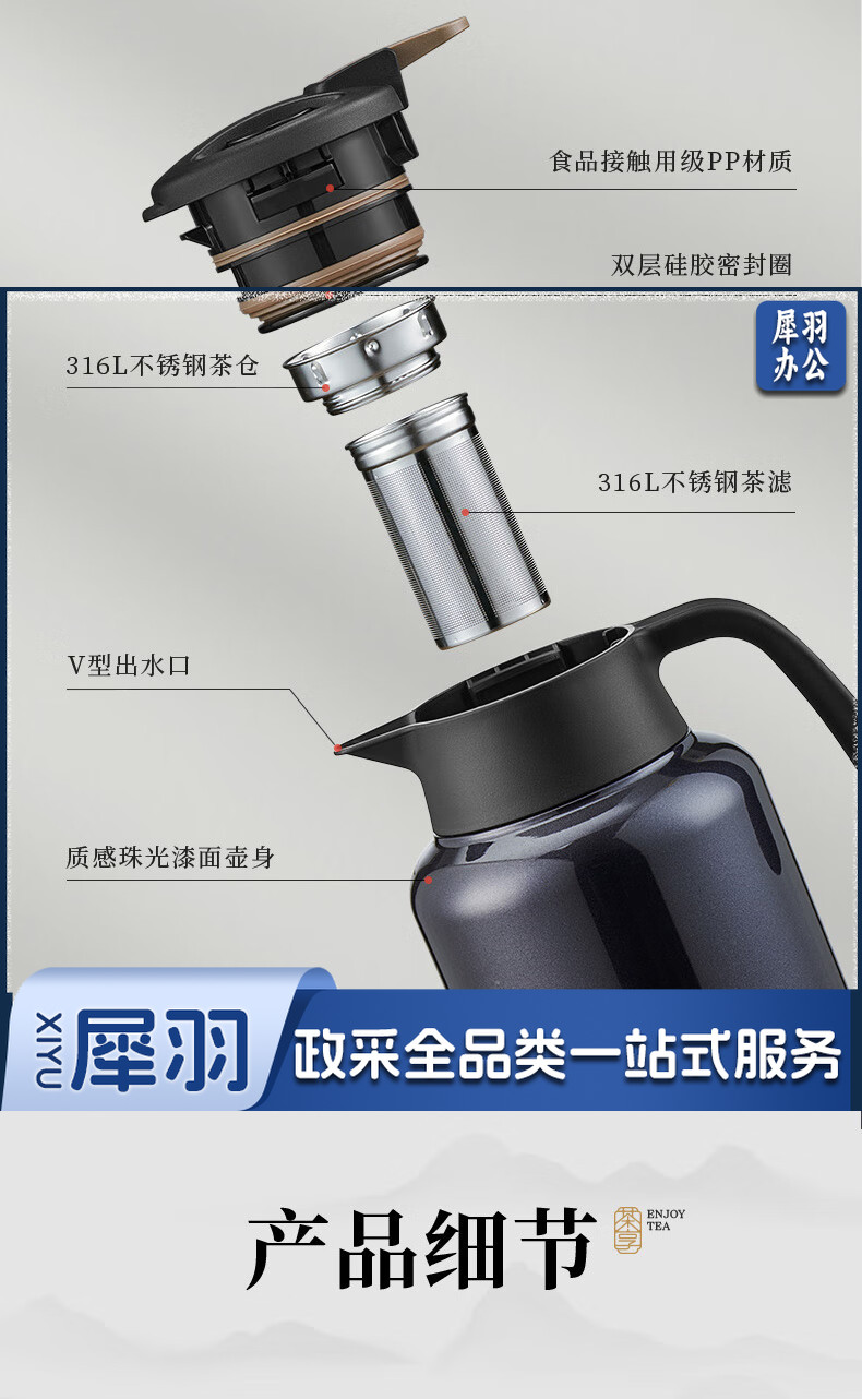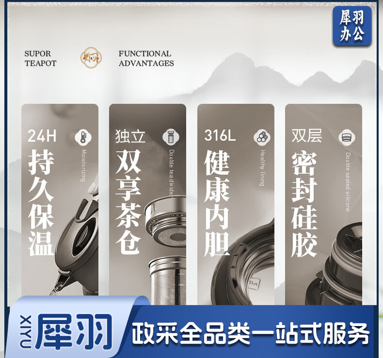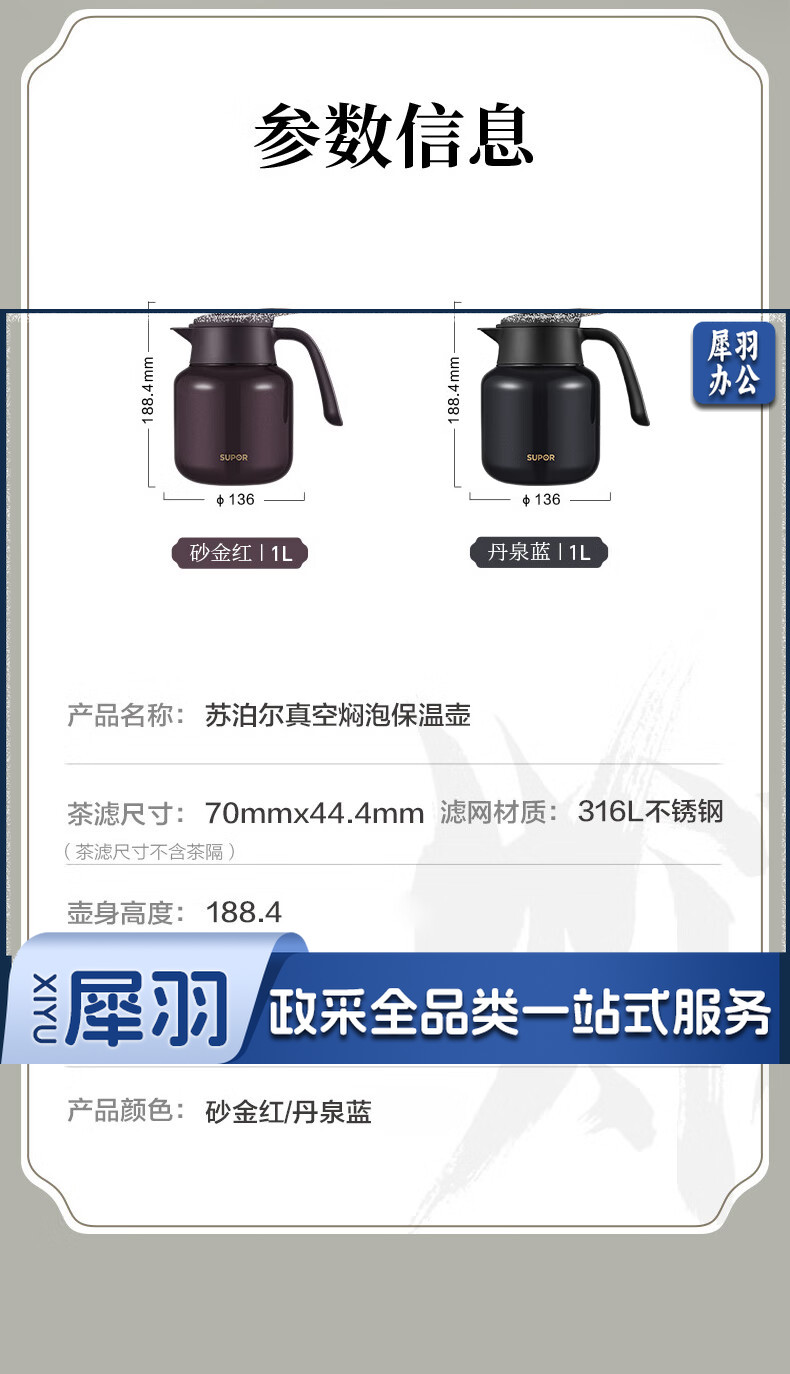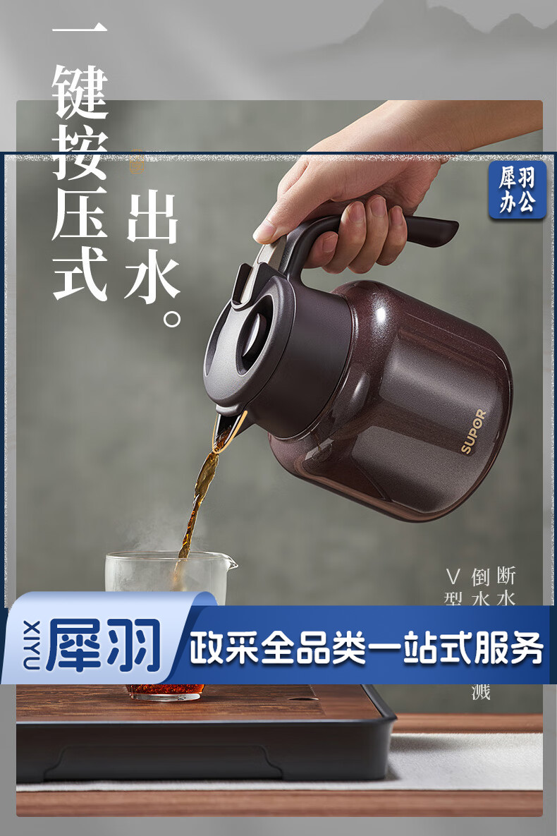 苏泊尔焖茶壶家用泡茶保温壶大容量水壶316L不锈钢保温瓶热水壶丹泉蓝