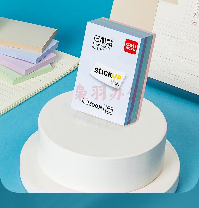 得力(deli)300张4色浅调系列淡彩简约便利贴 76*51mm便签本/记事贴/ 自粘留言本 办公用品 BT132超高性价比彩色300张小号