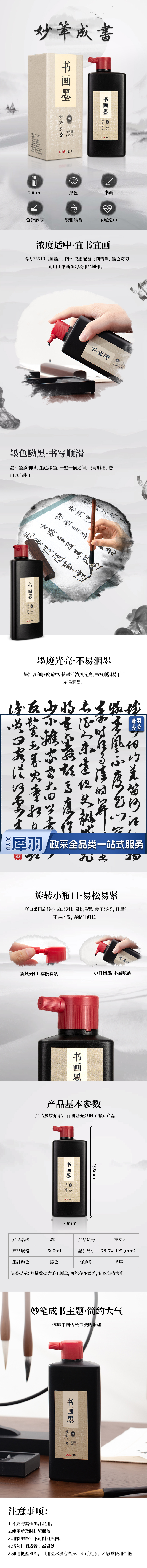 得力75513墨汁(黑色)(500ml/瓶)
