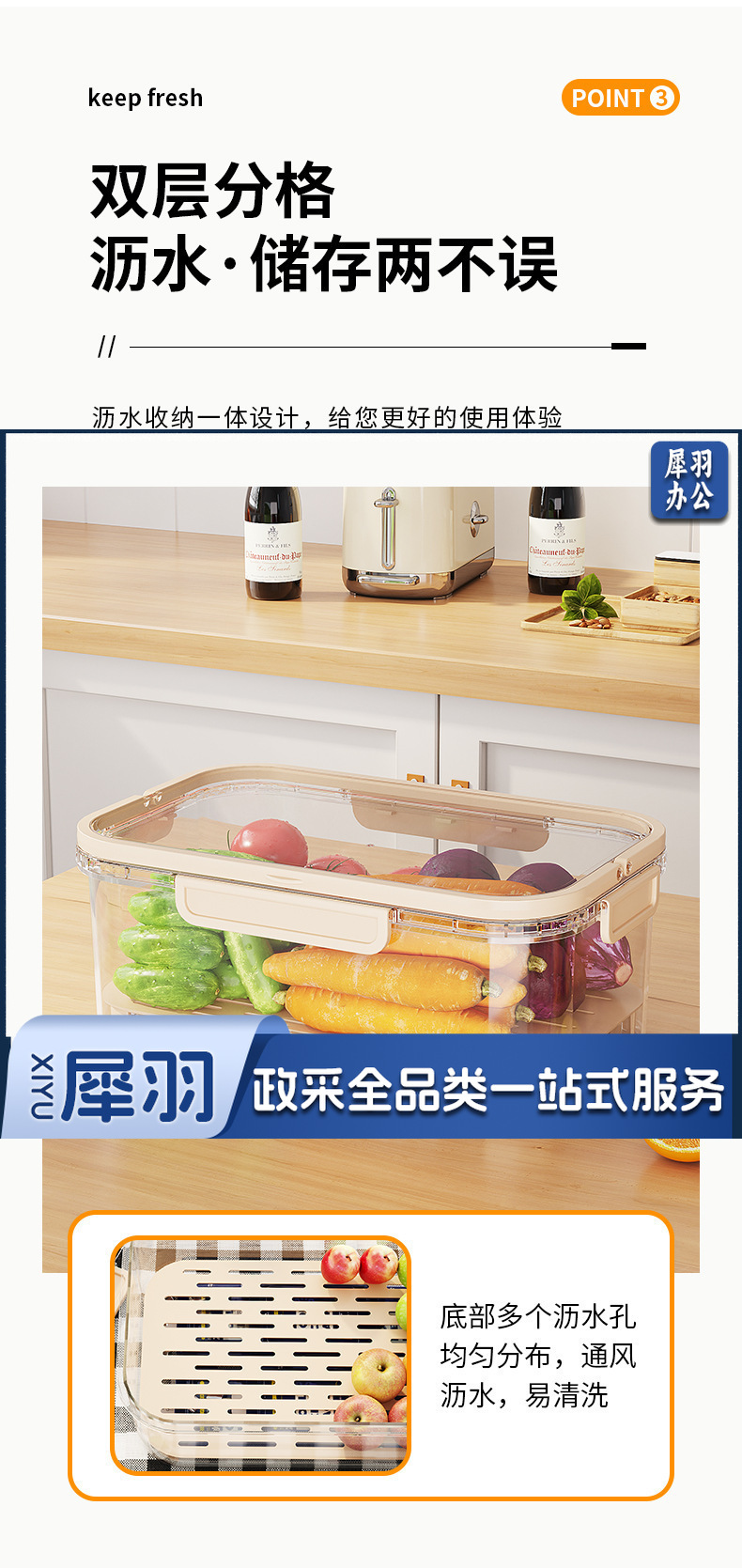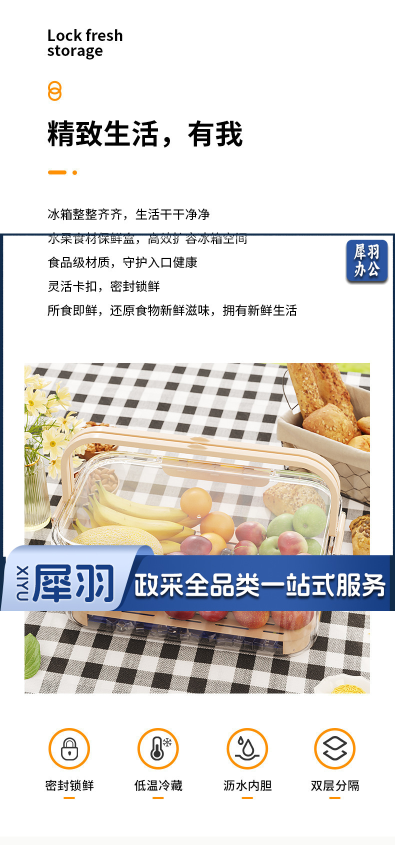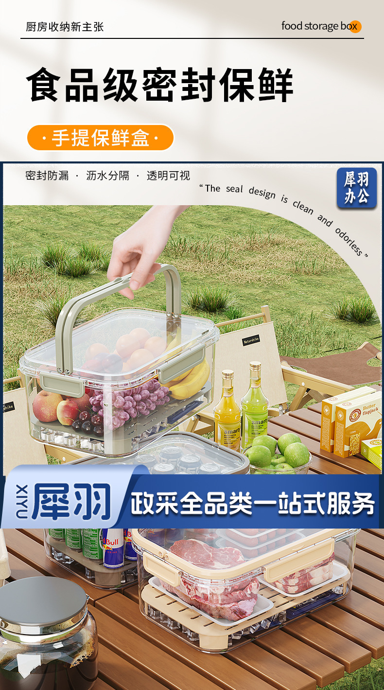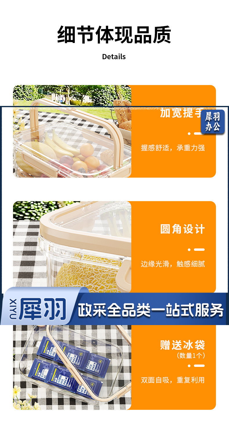 轻奢密封手提便携保鲜盒户外春游大容量保鲜盒便当盒学生春游水果(奶油米(手提保鲜盒))