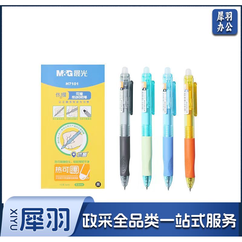 晨光优握热可擦中性笔易擦按动式签字笔0.5mm子弹头热可擦水笔AKPH7101黑色单支装