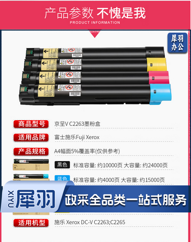 京呈 五代V C2263 大容量四色套装 适用施乐 DocuCentre V C2263/C2265