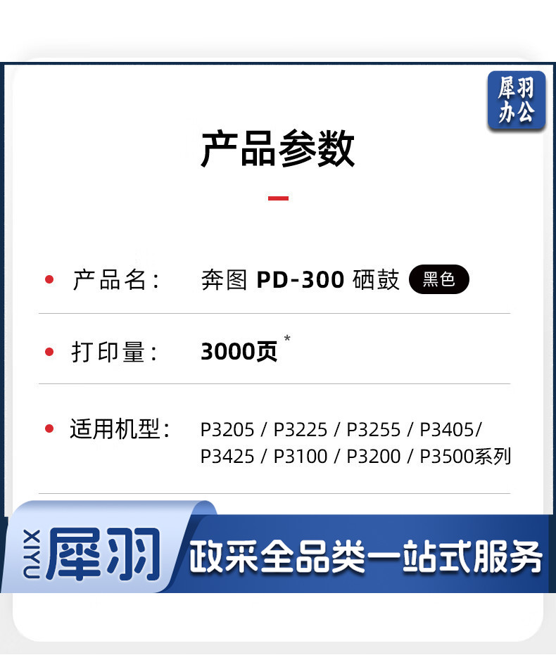 奔图(PANTUM)PD-300原装硒鼓 适用P3205 P3225 P3255粉盒P3405 P3425墨盒P3100 P3200 P3500打印机墨粉碳粉盒