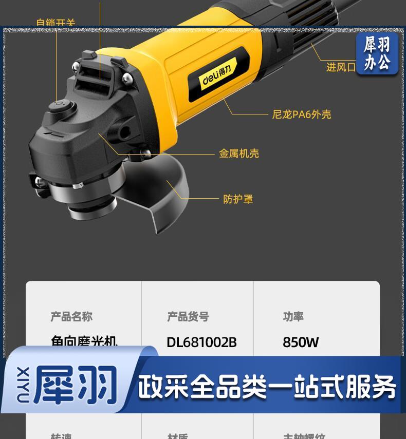 得力(deli) 850W角磨机角向磨光机切割机打磨机抛光机电动工具应急常备 DL681002B