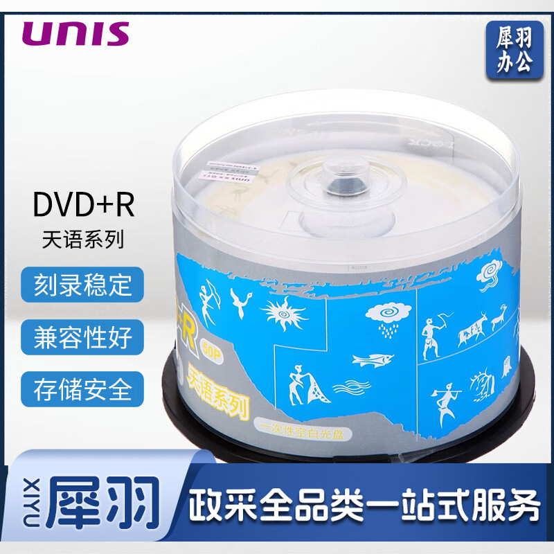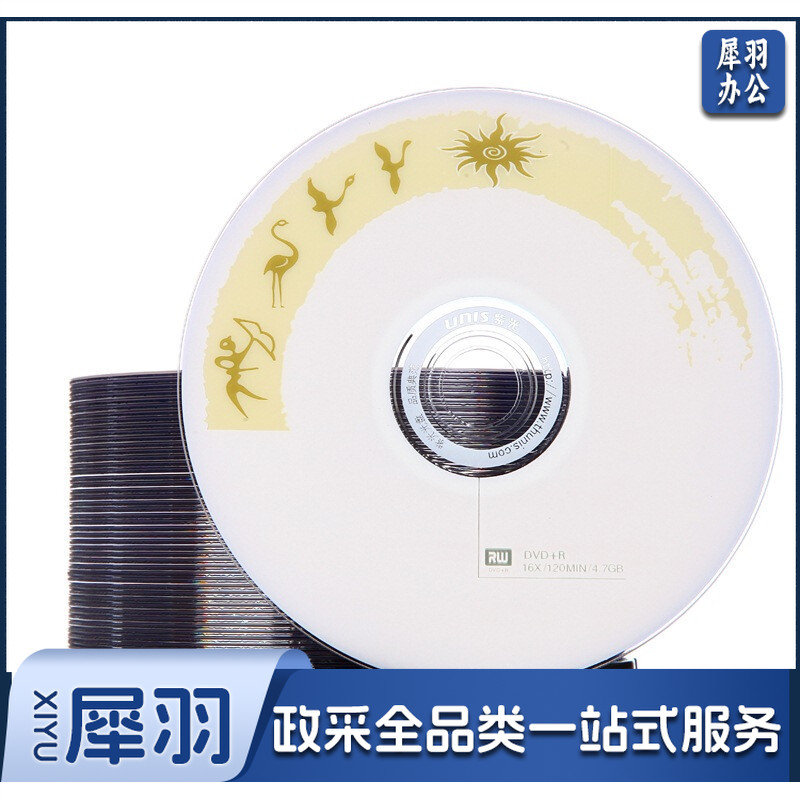 紫光(UNIS)DVD+R光盘/刻录盘 天语系列 空白盘 16速4.7G 桶装50片