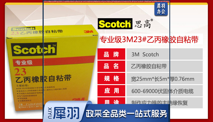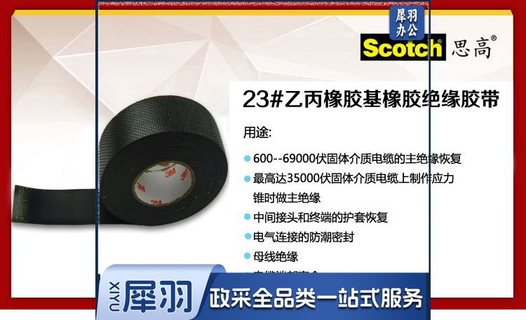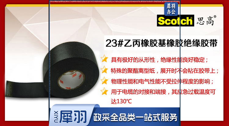 3M 电工胶带,Scotch 23# 黑 25mm×5m