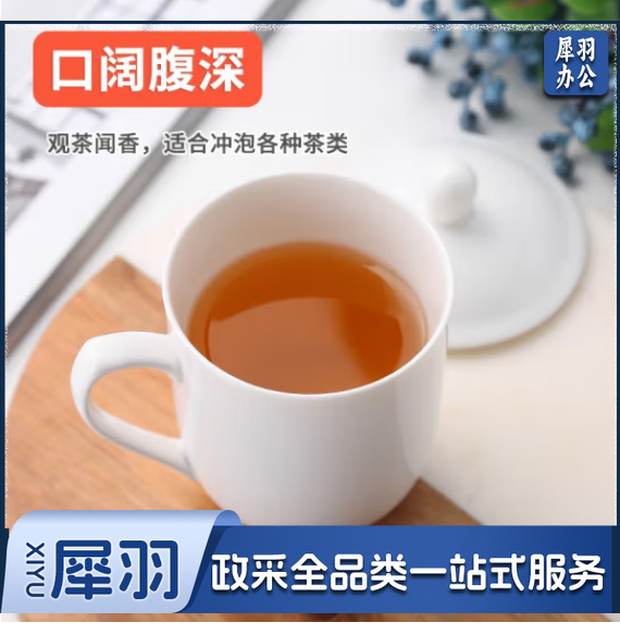 带盖茶杯 办公杯陶瓷杯纯白瓷盖杯商务会议杯宾馆酒店开会水杯