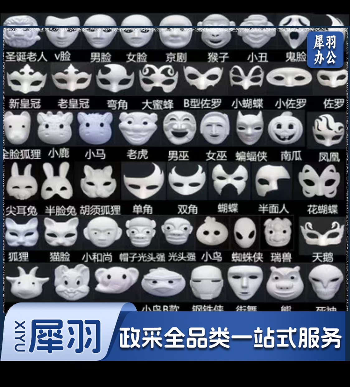 面具 DIY白色纸面具 纸浆空白手绘面具 空白脸谱(下单前请咨询客服)