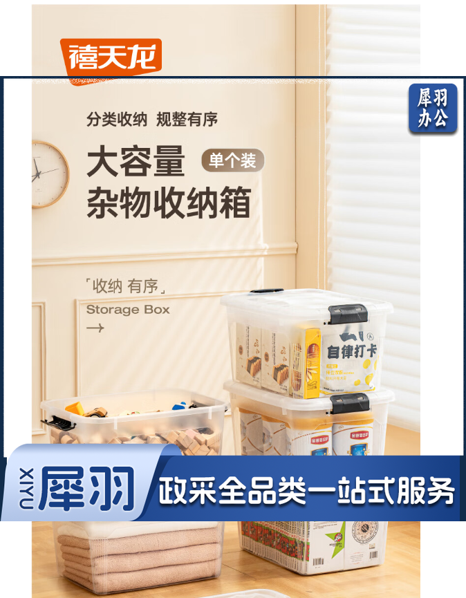 禧天龙塑料衣物收纳箱玩具整理箱30L 透明 1个装 不带轮高透30L单只47.5*35.5*26
