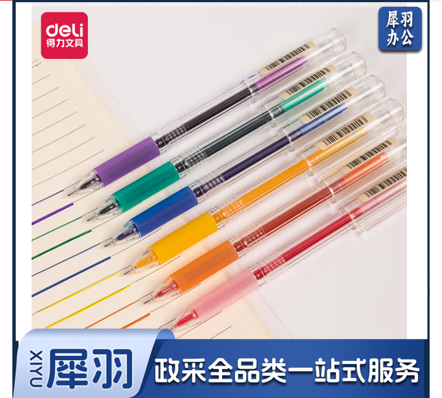 得力 0.5mm彩色签字笔 糖果6色拔帽全针管签字笔荧光笔水笔手账笔 A125