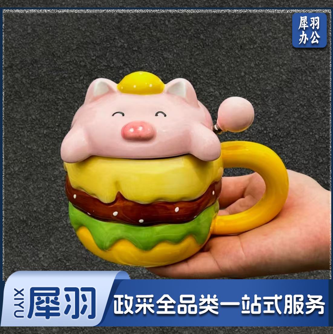 高颜值卡通汉堡陶瓷杯子带盖 实用伴手礼