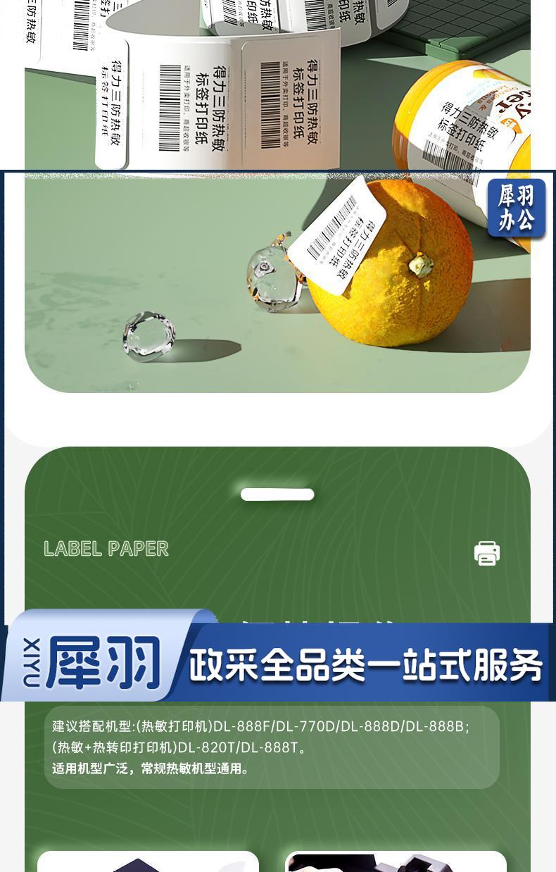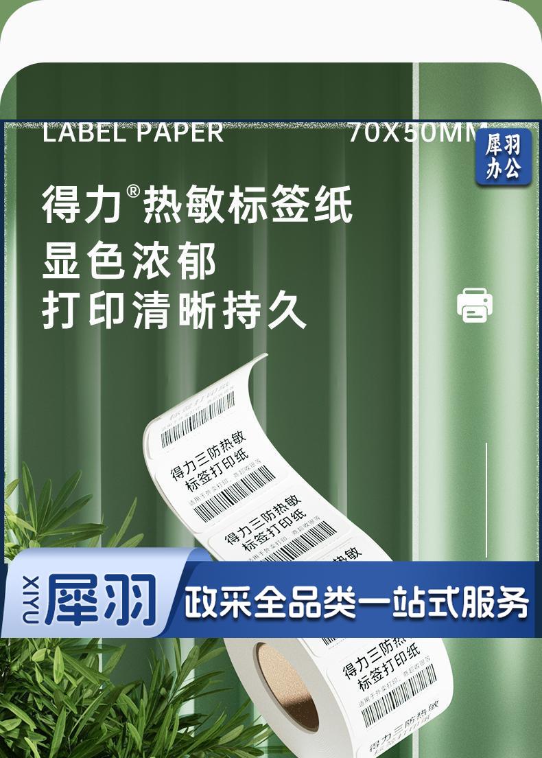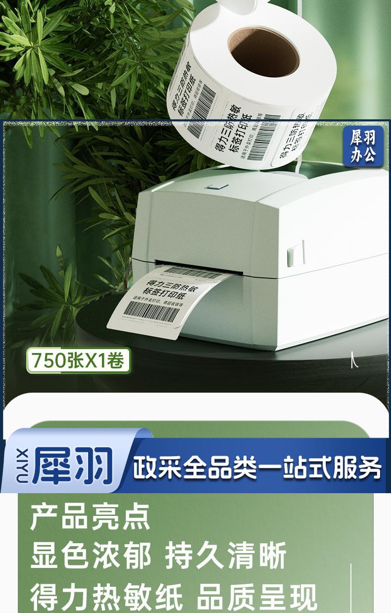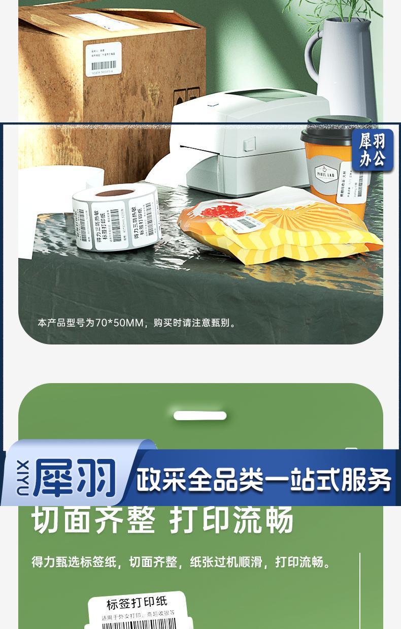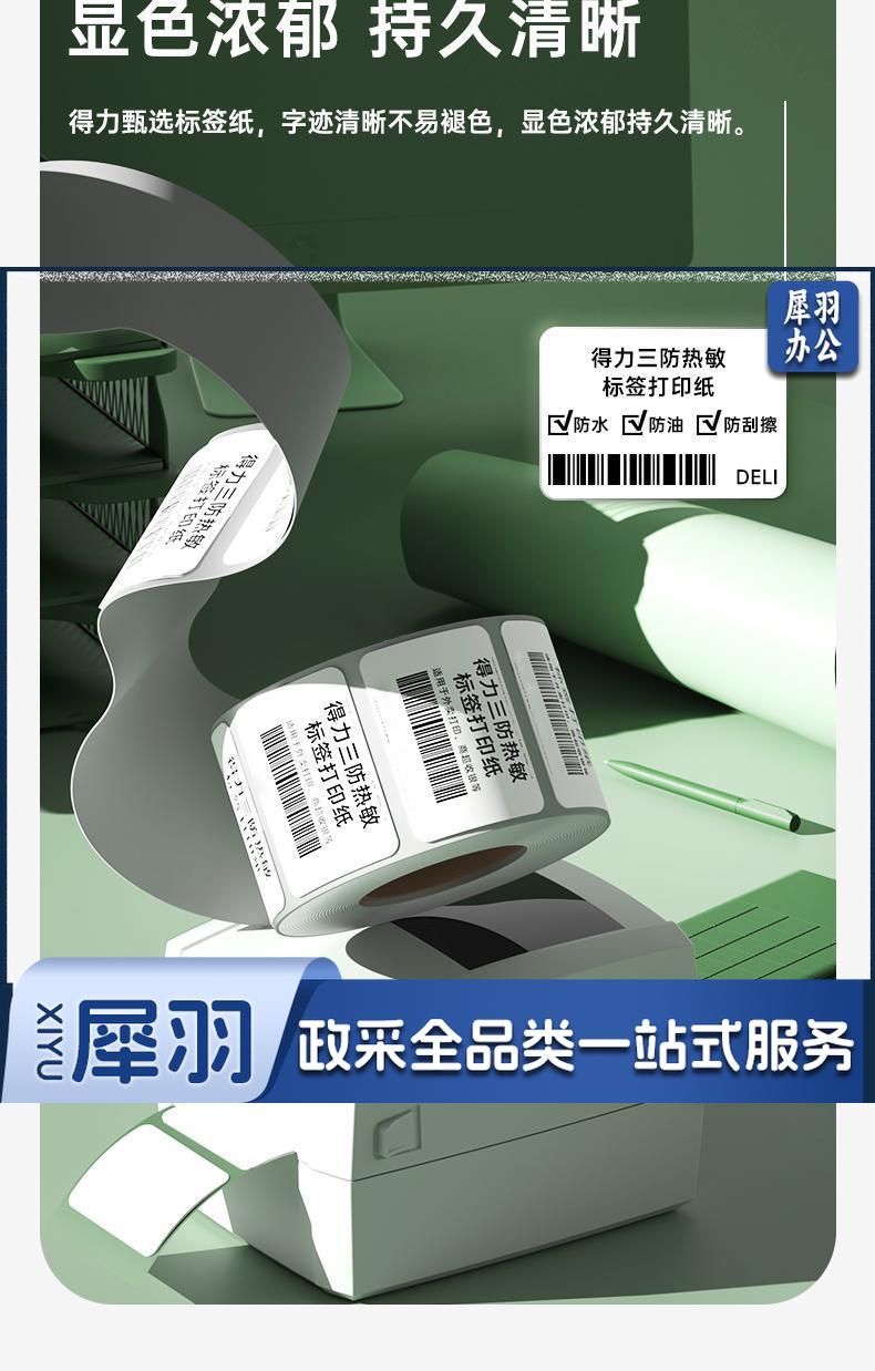 得力(deli)70*50mm三防热敏标签打印纸 电子面单标签不干胶打印纸电子称条码纸750张*1卷 三防升级款12004100*150mm|三防小包装