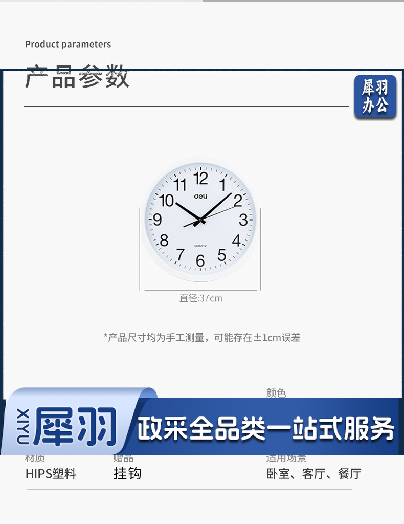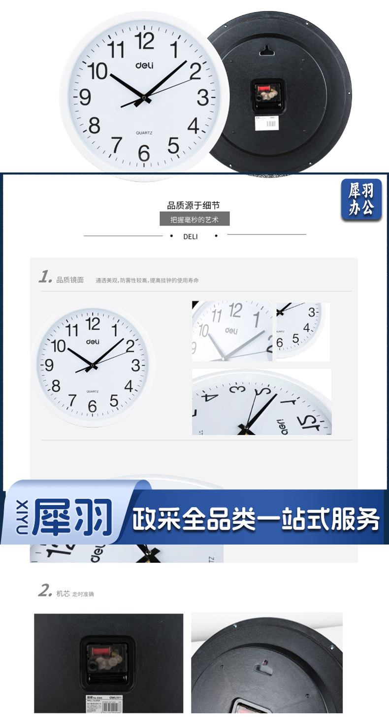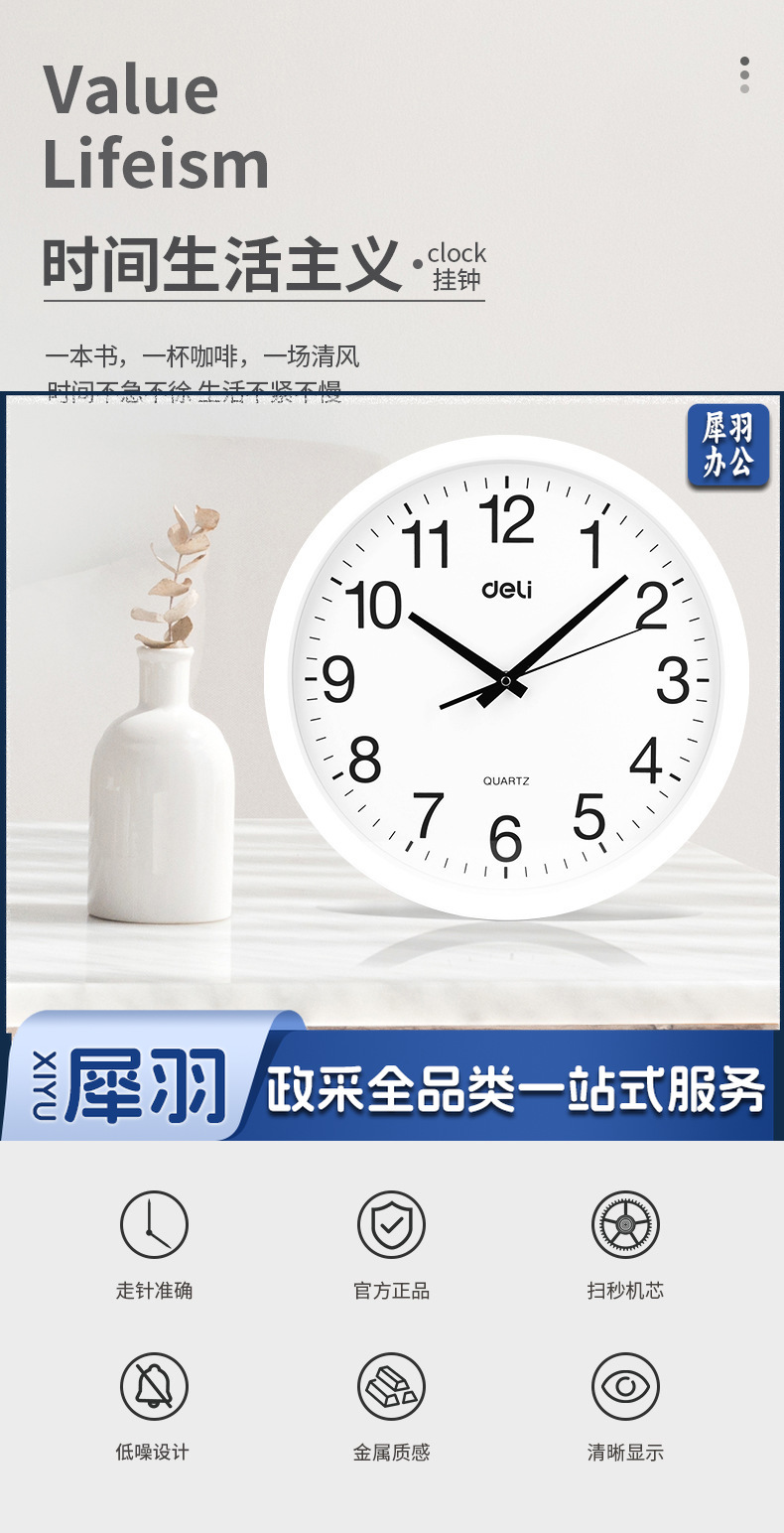 得力9006挂钟(白)(只)37CM(14.5寸)