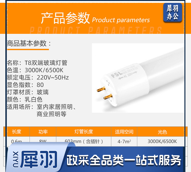 佛山 LED-T8-16W灯管 暖光 1.2米 双端