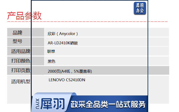 欣彩 LD2410硒鼓 专业版 AR-LD2410K黑色 2K适用联想LENOVO CS2410DN