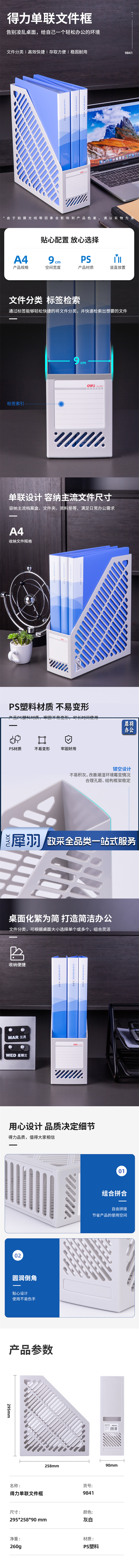 得力 9841 单联文件框 295*258*90mm (单位:只) 灰白色