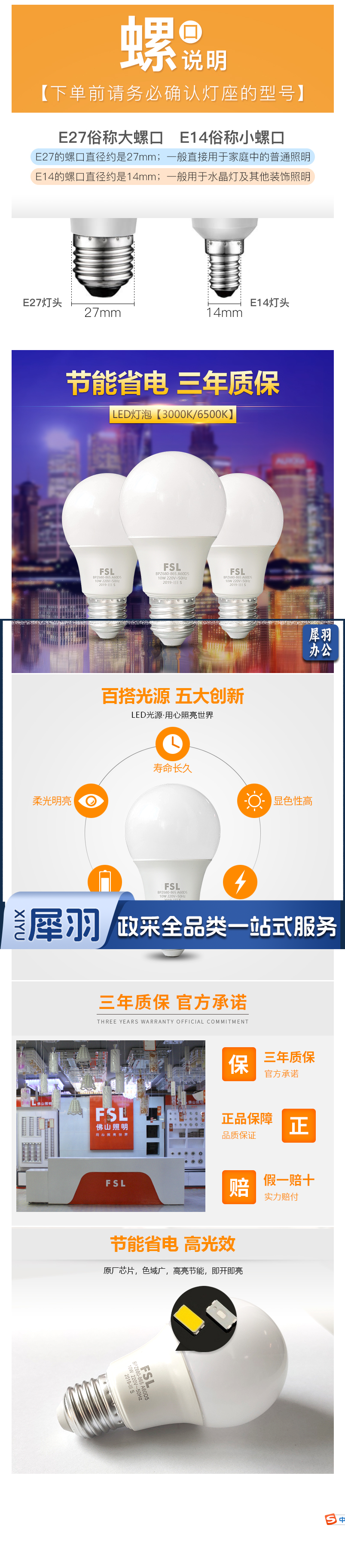 佛山 LED球泡18w E27 6500K 220V FSL超炫三代