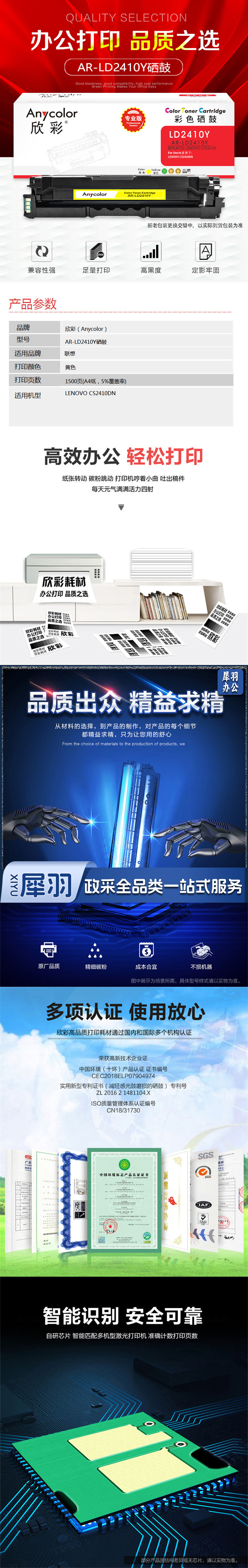 欣彩 LD2410硒鼓 专业版 AR-LD2410Y红色 1.5K适用联想LENOVO CS2410DN