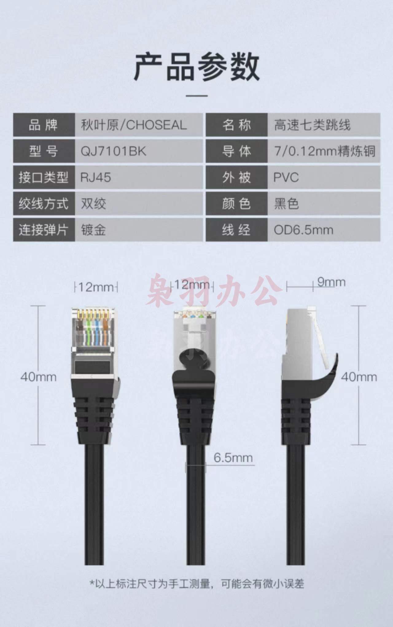 秋叶原(CHOSEAL)3米七类网线 Cat7类纯铜双屏蔽万兆网络连接线 7类宽带电脑游戏监控网络跳线3米 QJ7101BKT3
