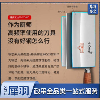 十八子作 厨师专用刀 专业中式厨刀菜刀 三合钢名典系列 木柄2号桑刀F208-2