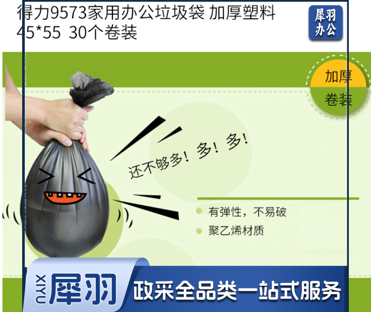 得力 9573 家用办公垃圾袋 加厚塑料袋垃圾袋 45*55 一卷30只装