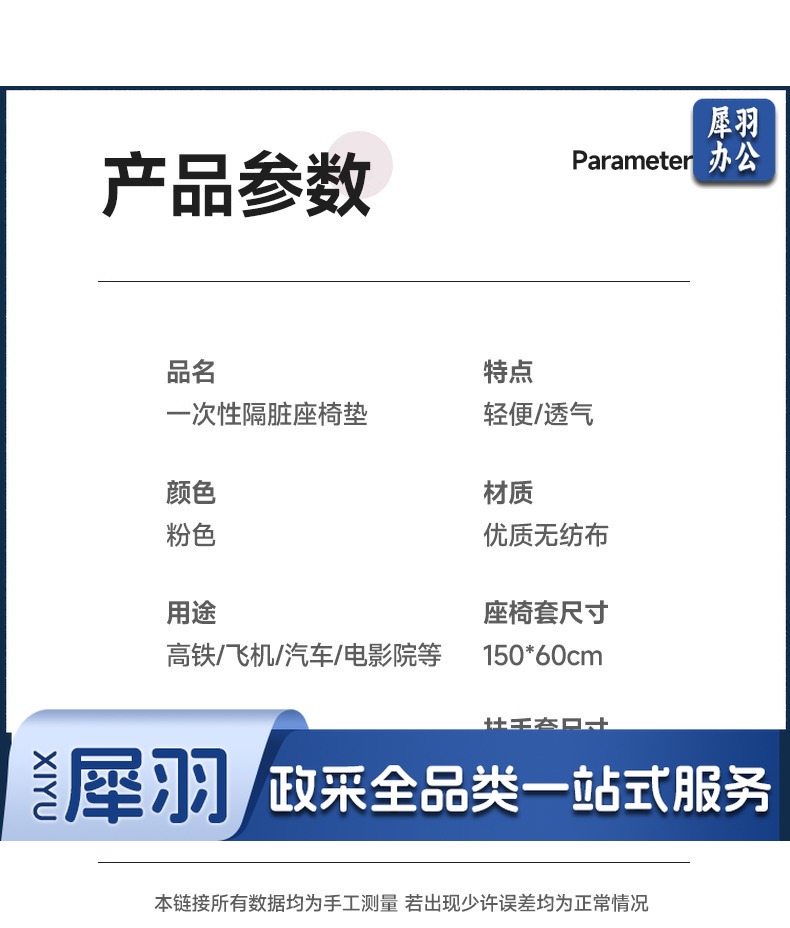 一次性高铁座椅套加厚加大隔脏无纺布火车飞机公共座椅垫(粉色座椅套带扶手套)