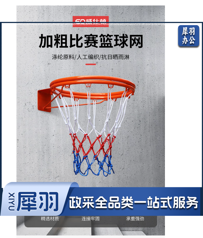 威仕顿 篮球网 室内外加粗比赛球网标准篮球框网兜 6MM12孔 1副两个装