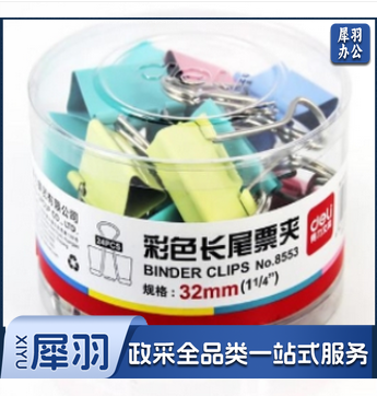得力8553-3#彩色长尾票夹32mm筒装(混)(24只/筒)