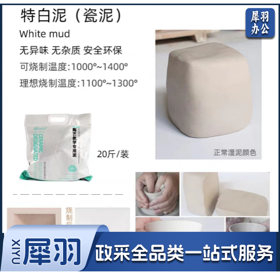 陶泥批量高白泥粘土陶土泥塑20斤装手工陶艺制作教学(特白泥)