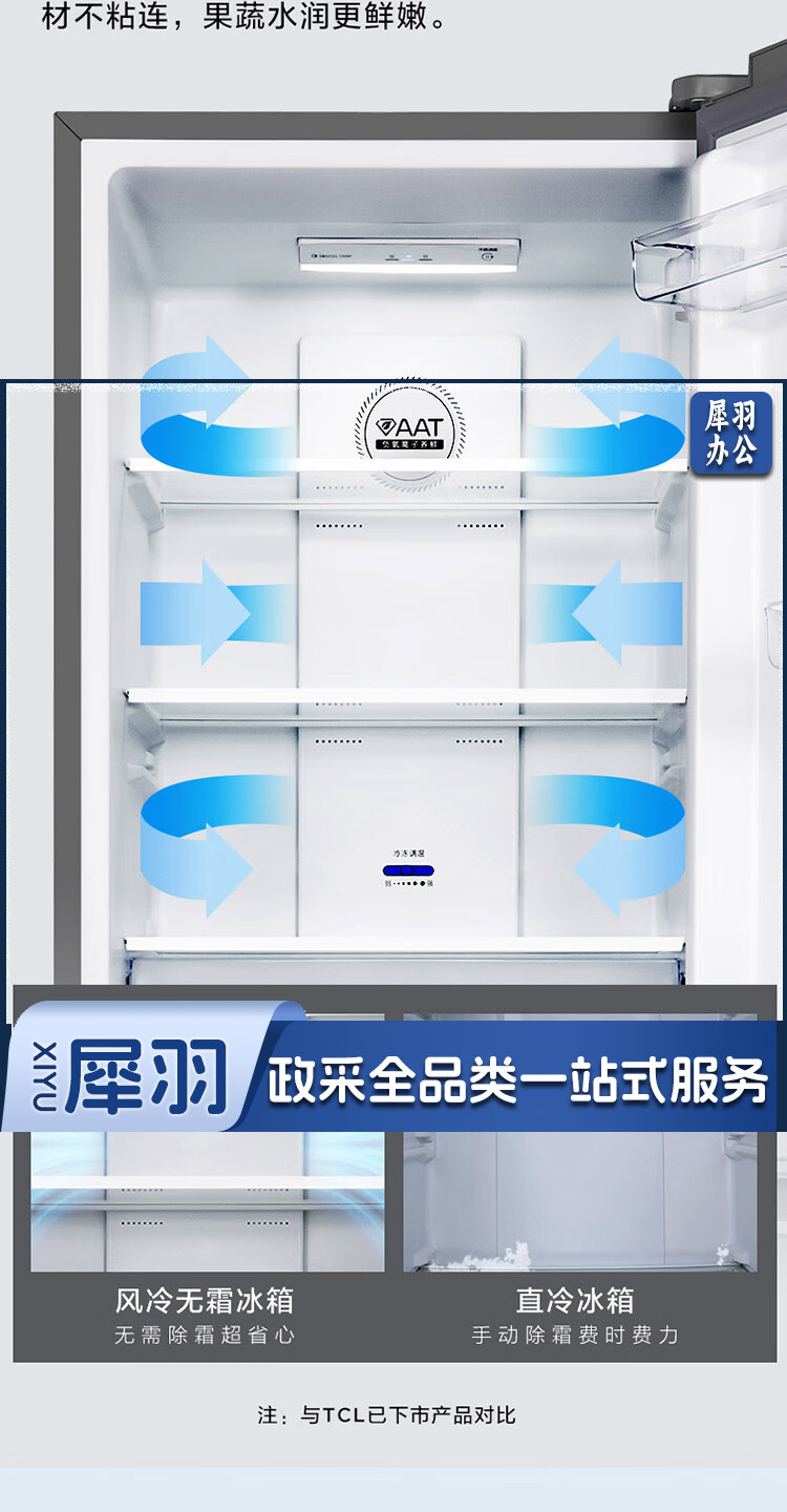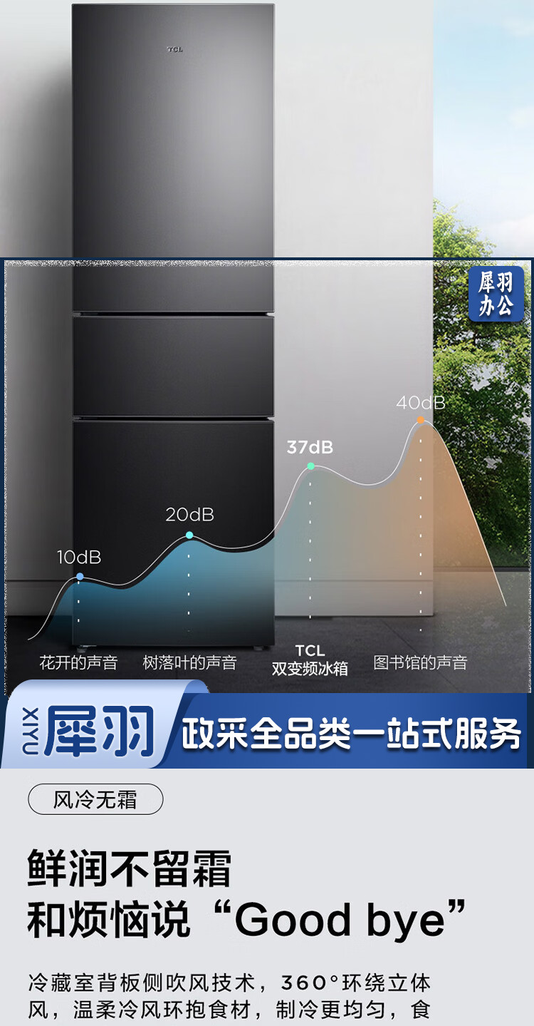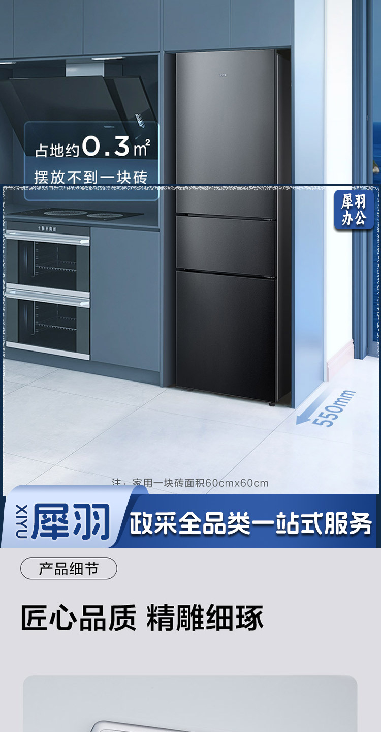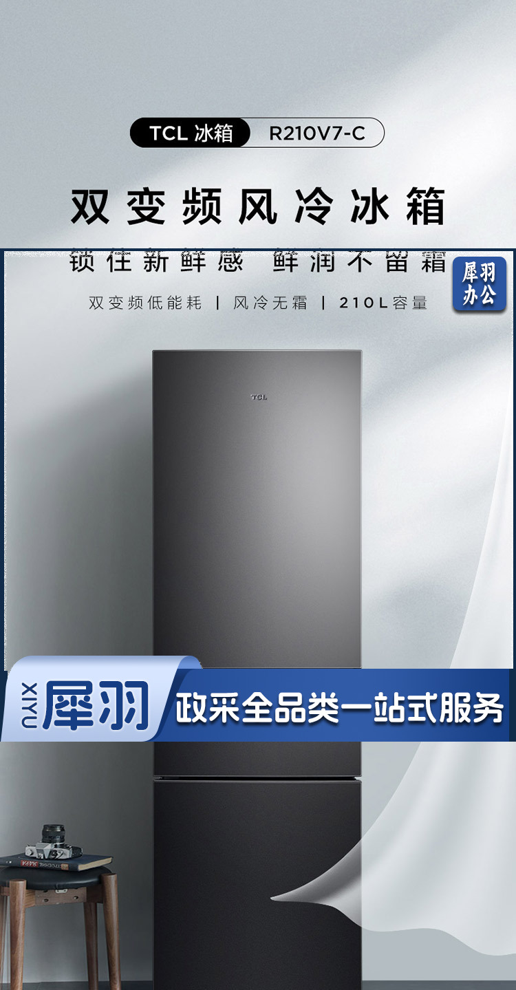 TCL 210升双变频风冷无霜冰箱三门小型宿舍家用电冰箱 负离子养鲜 37分贝低音节能省电小冰箱R210V7-C